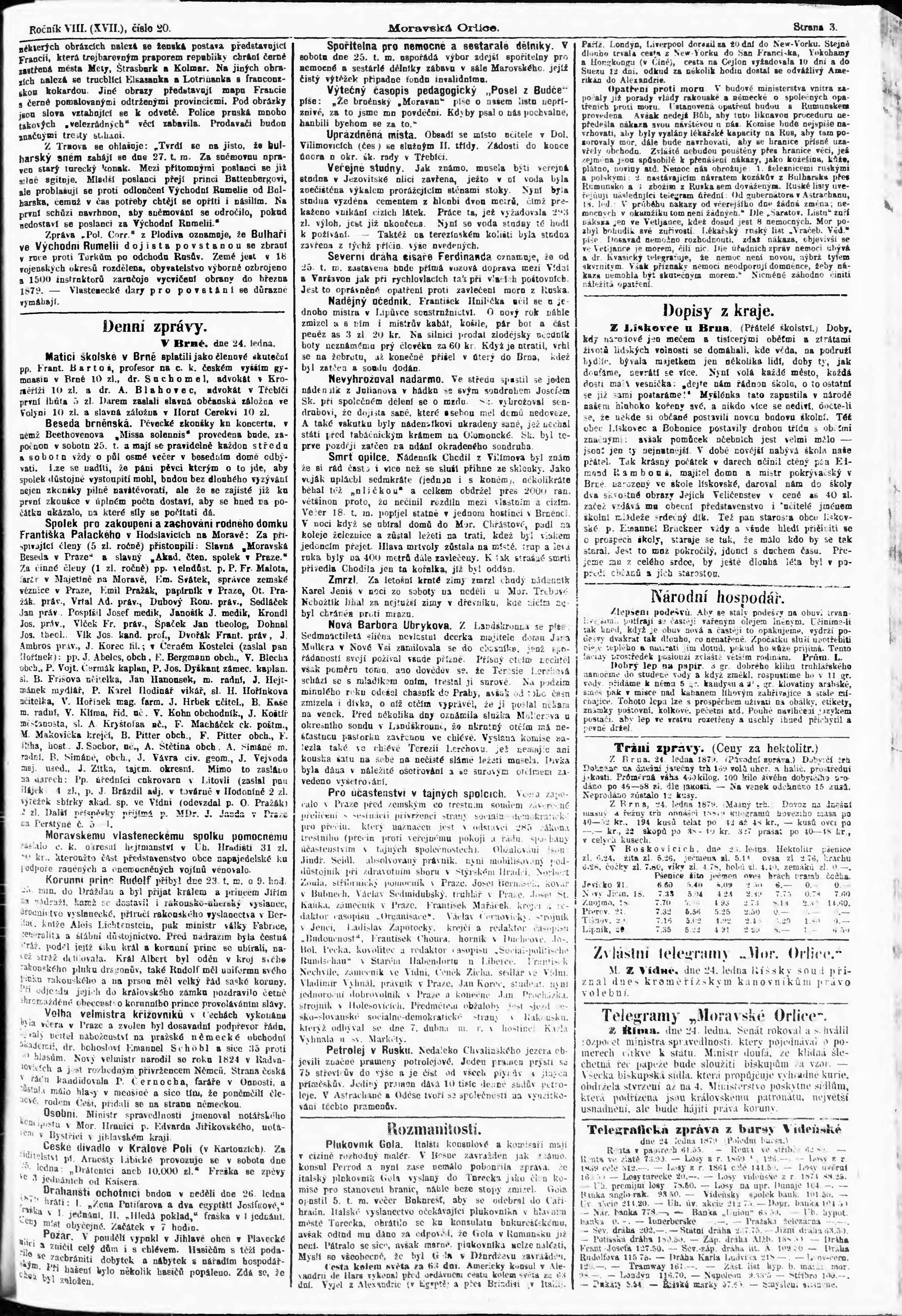 * Datum vydání výtisku: 25.1.1879 Číslo výtisku: 20