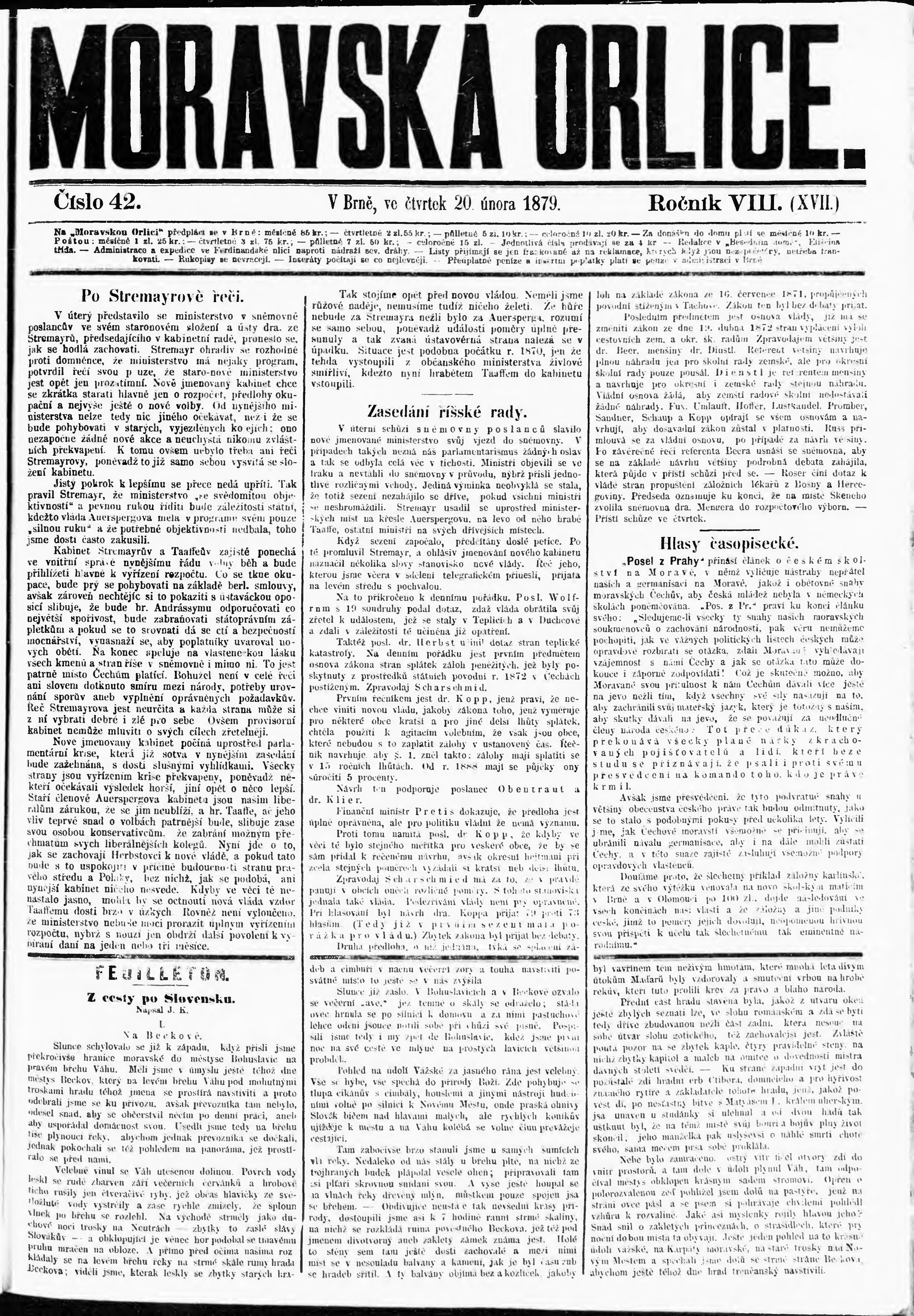 * Datum vydání výtisku: 20.2.1879 Číslo výtisku: 42