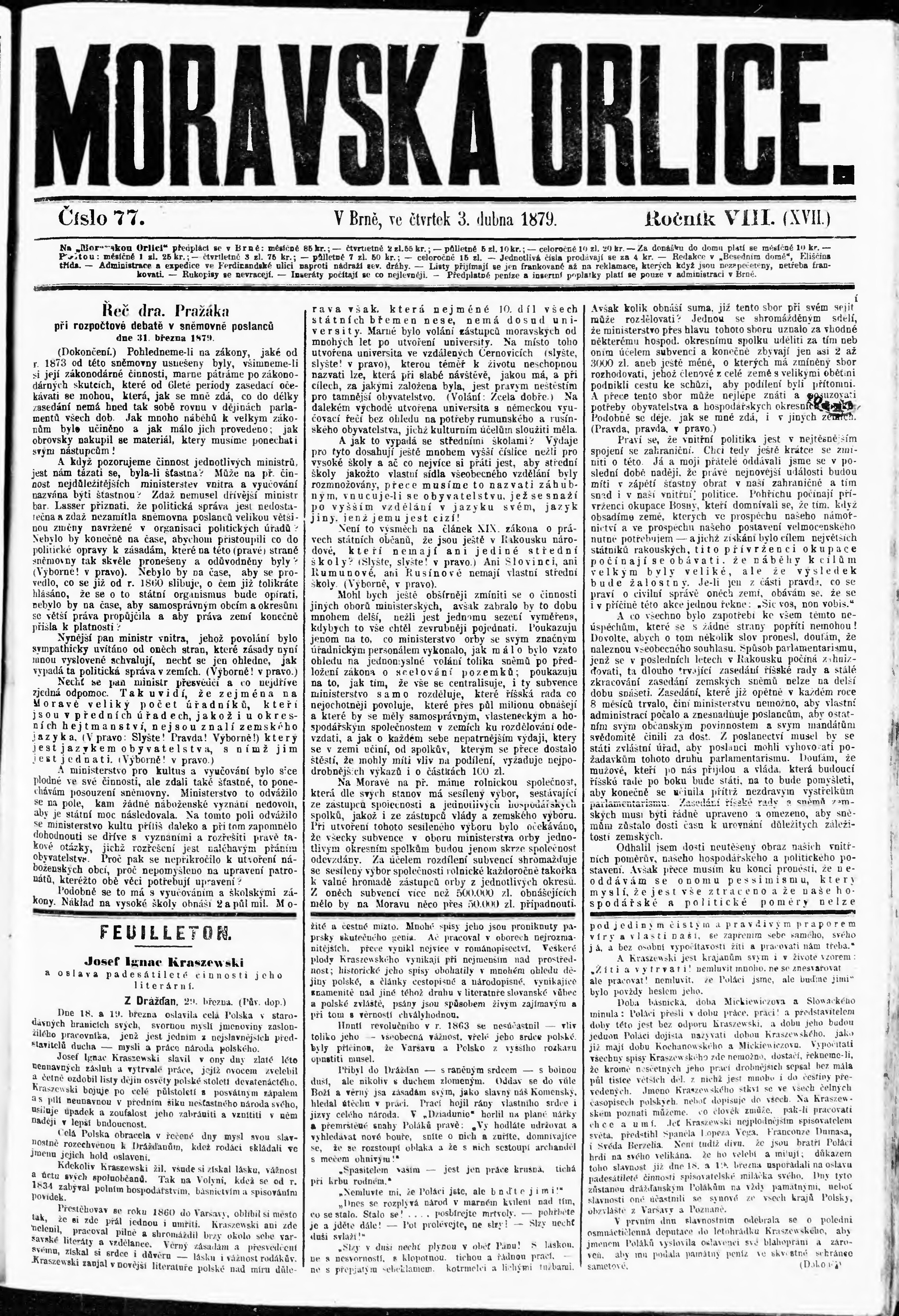 * Datum vydání výtisku: 3.4.1879 Číslo výtisku: 77