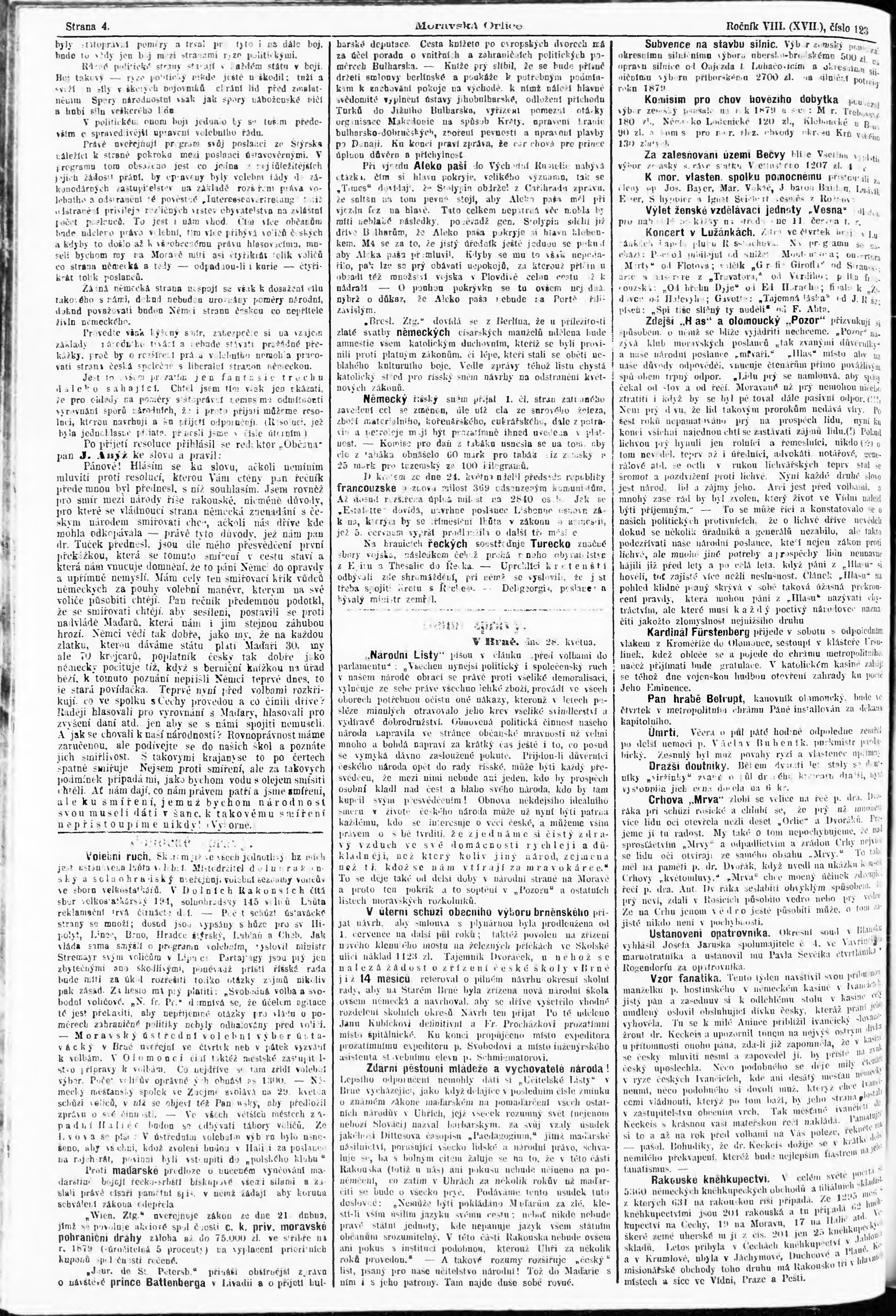 * Datum vydání výtisku: 29.5.1879 Číslo výtisku: 123