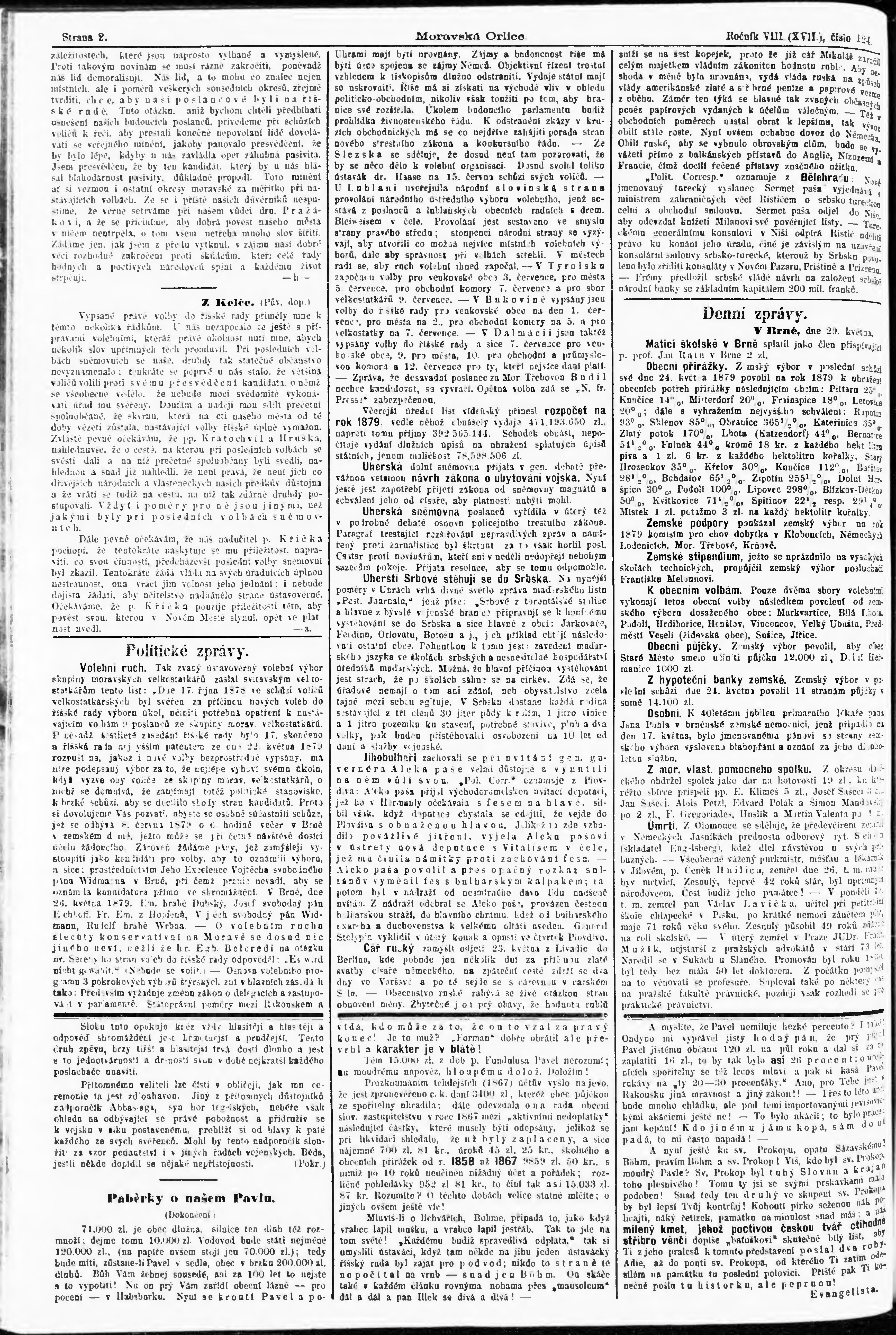 * Datum vydání výtisku: 30.5.1879 Číslo výtisku: 124