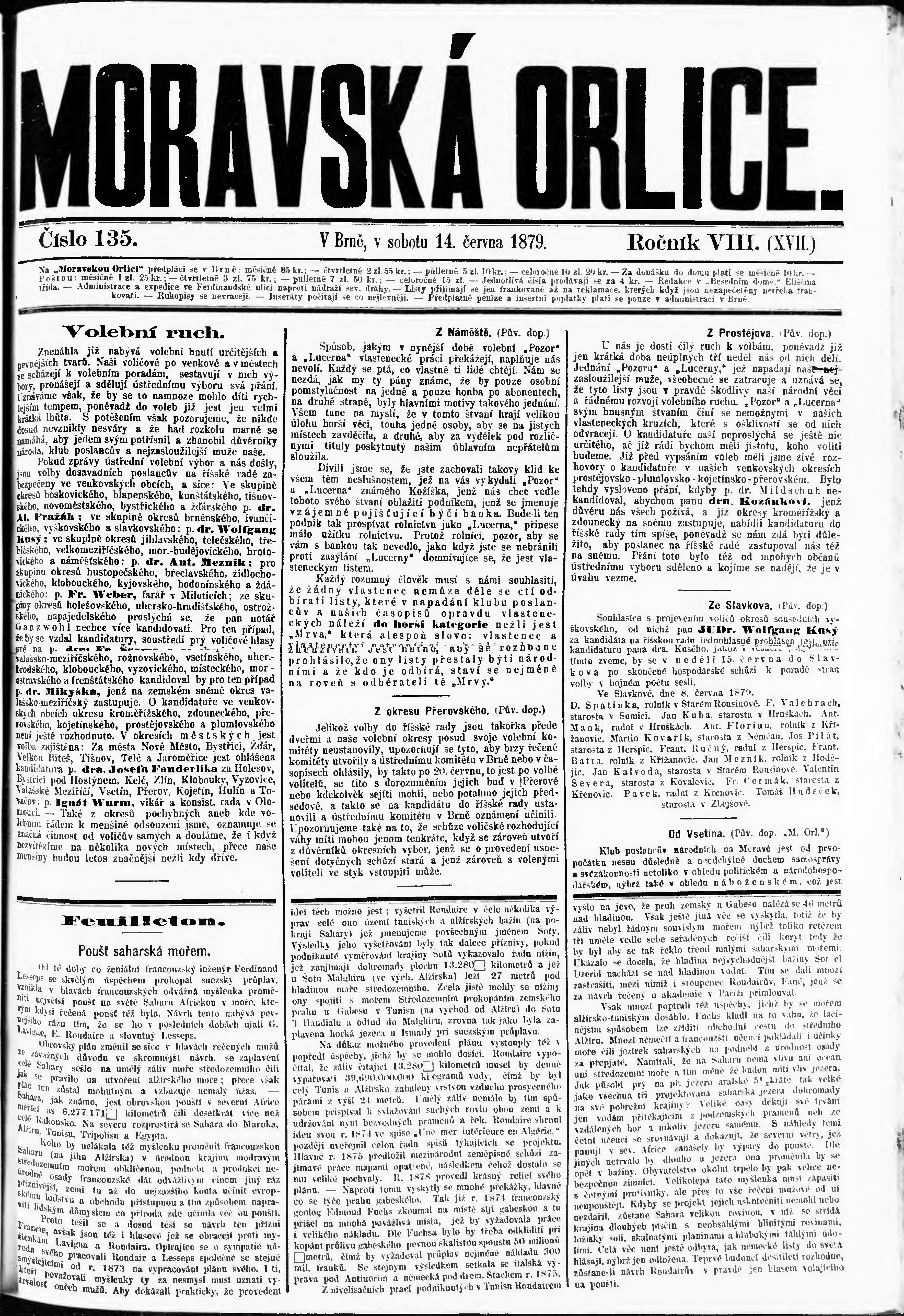 * Datum vydání výtisku: 14.6.1879 Číslo výtisku: 135