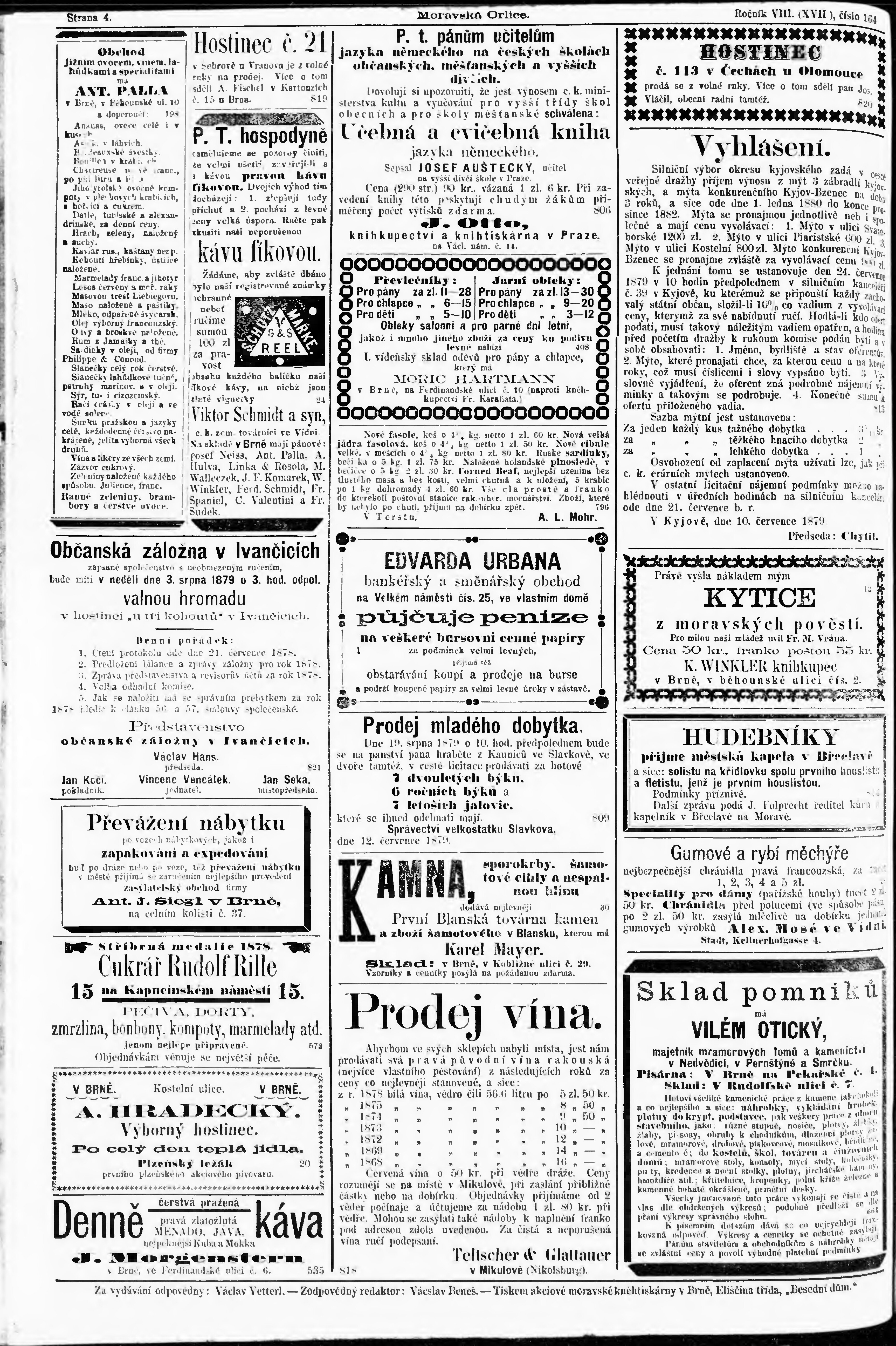 * Datum vydání výtisku: 19.7.1879 Číslo výtisku: 164