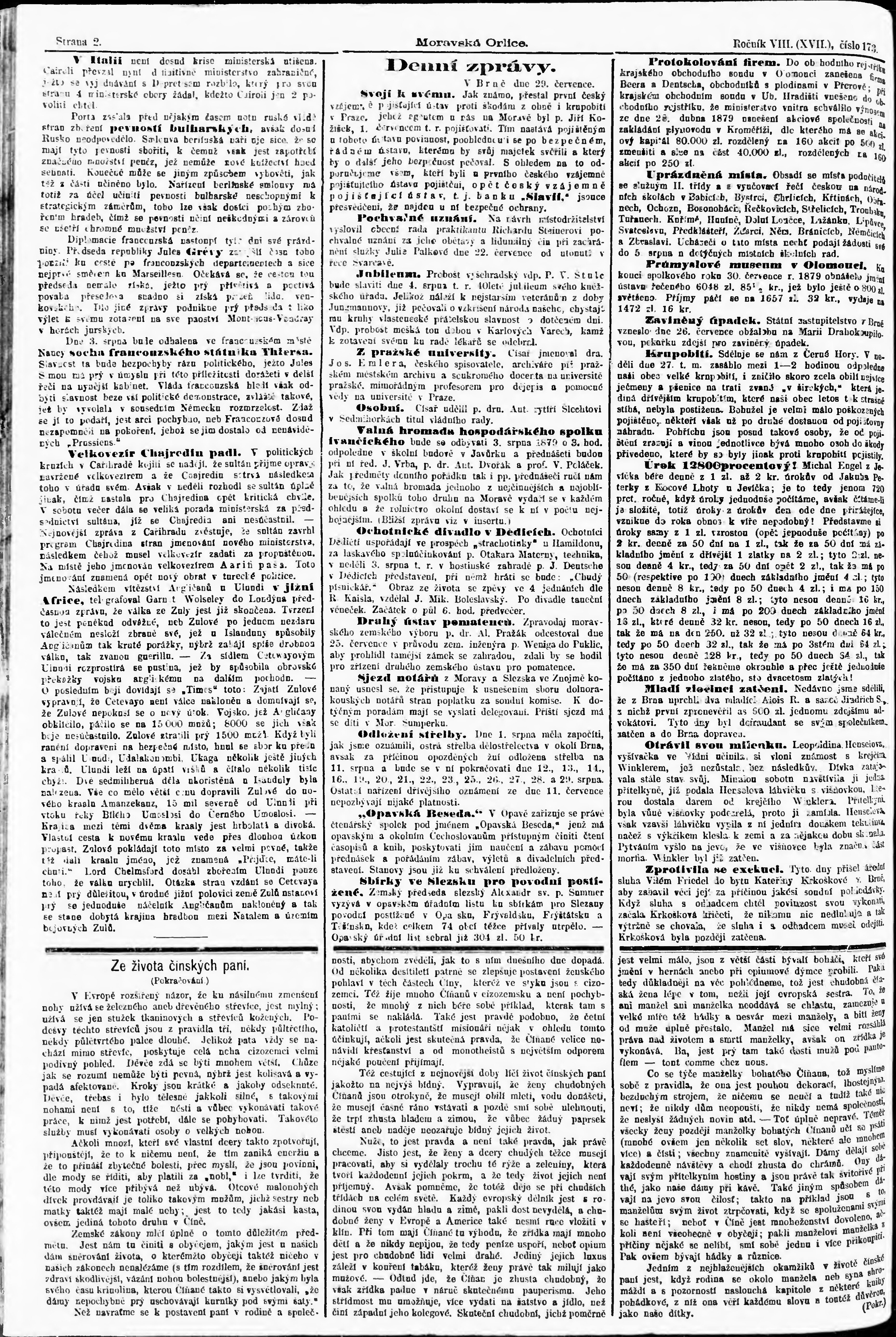 * Datum vydání výtisku: 30.7.1879 Číslo výtisku: 173