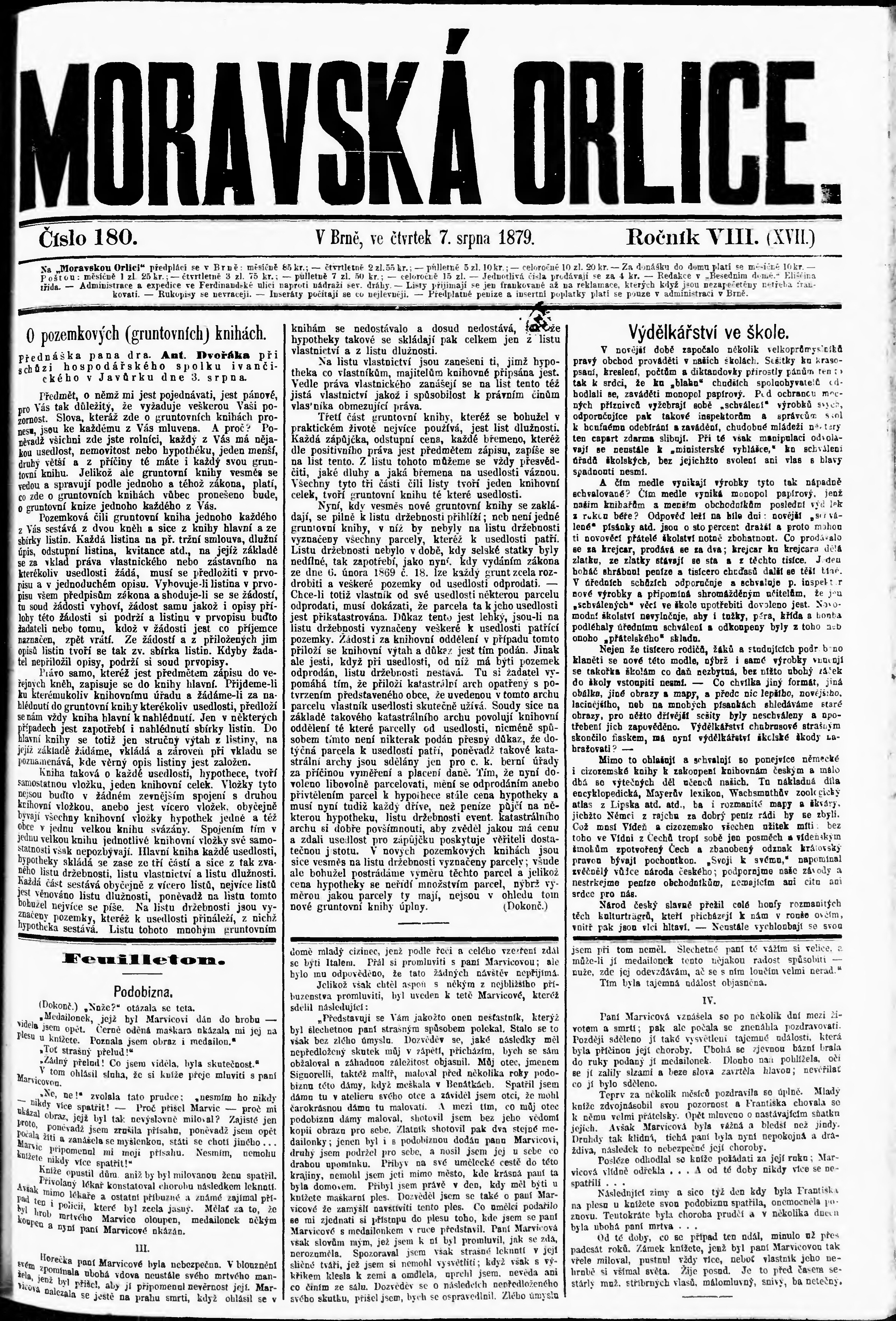 * Datum vydání výtisku: 7.8.1879 Číslo výtisku: 180