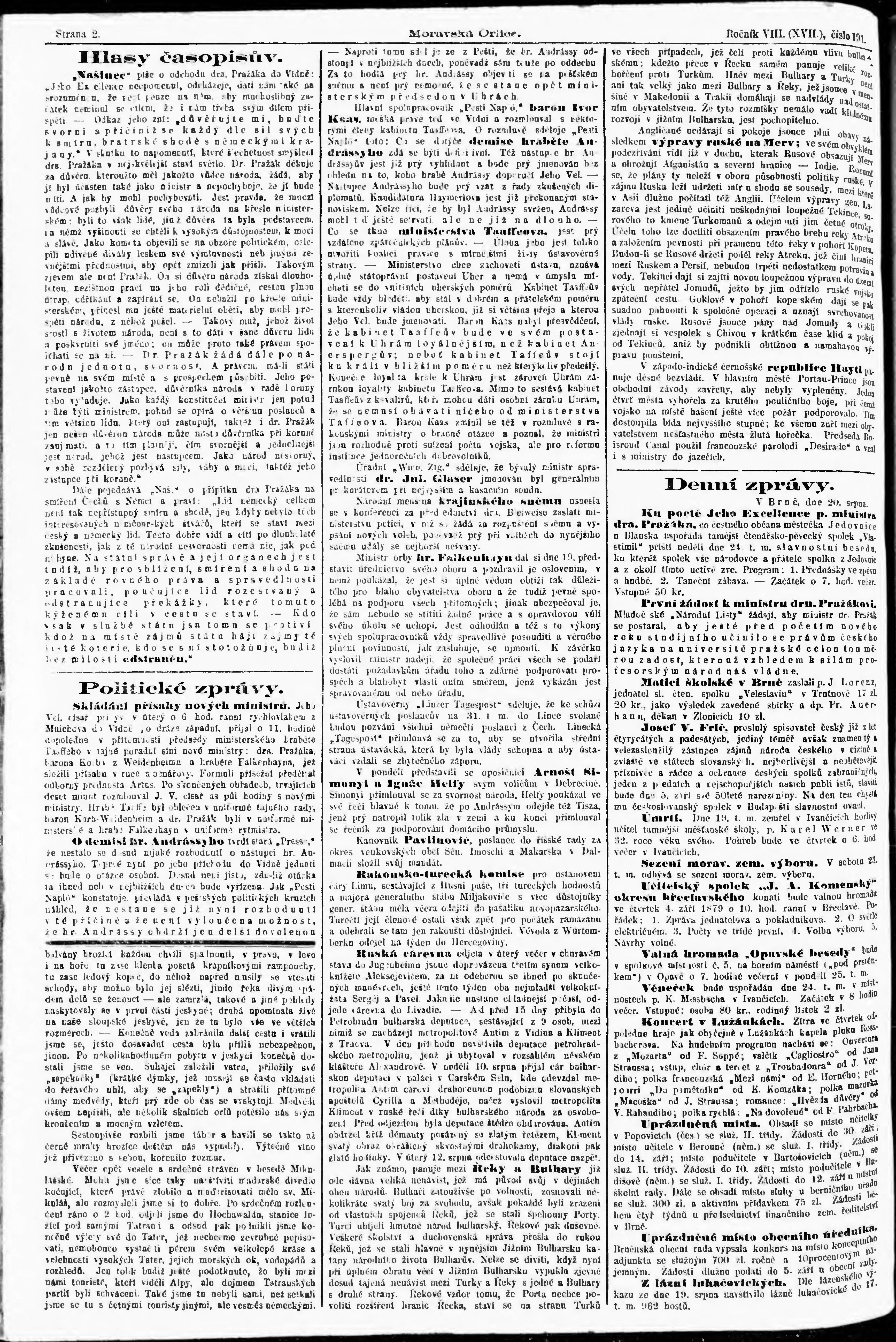 * Datum vydání výtisku: 21.8.1879 Číslo výtisku: 191