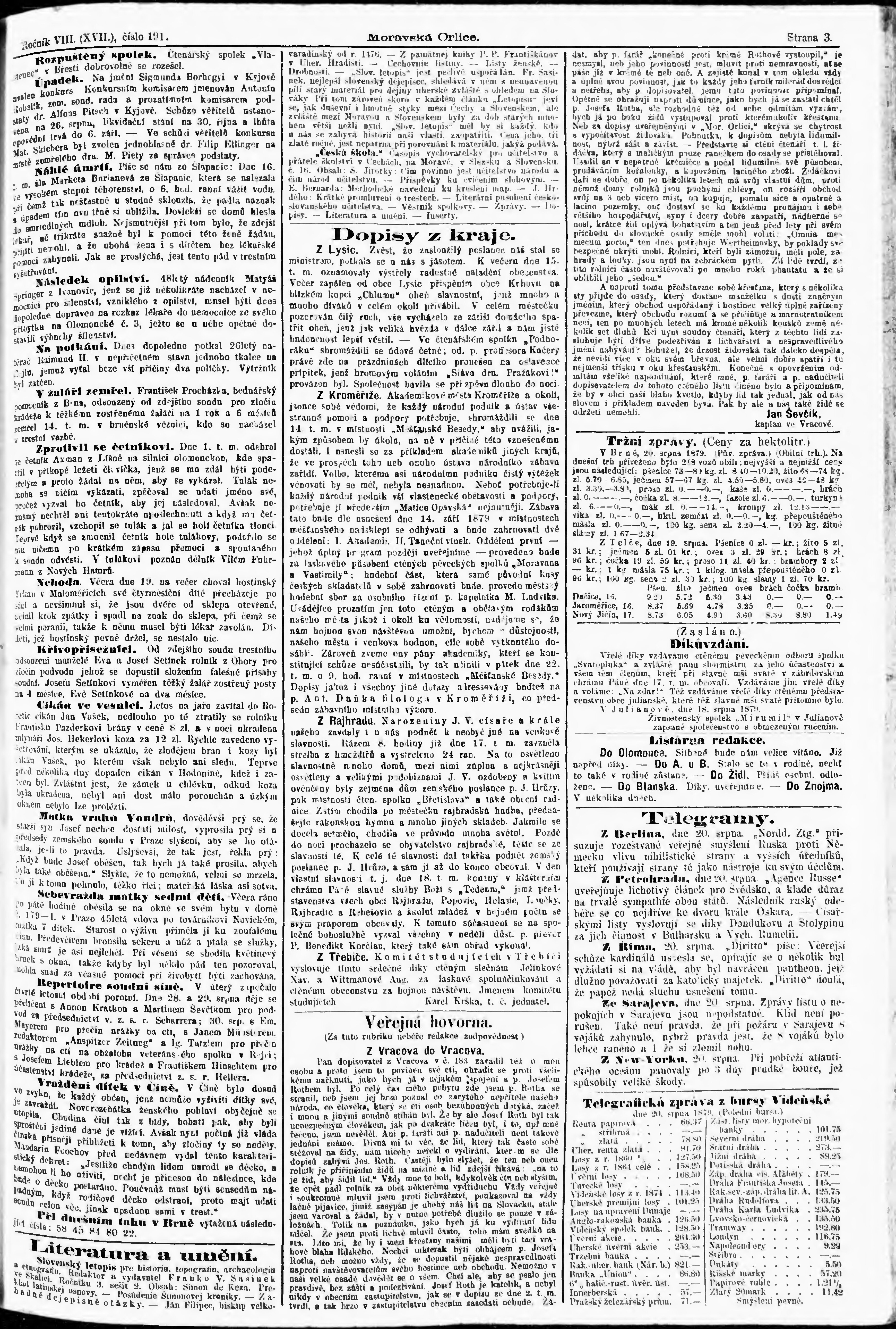 * Datum vydání výtisku: 21.8.1879 Číslo výtisku: 191