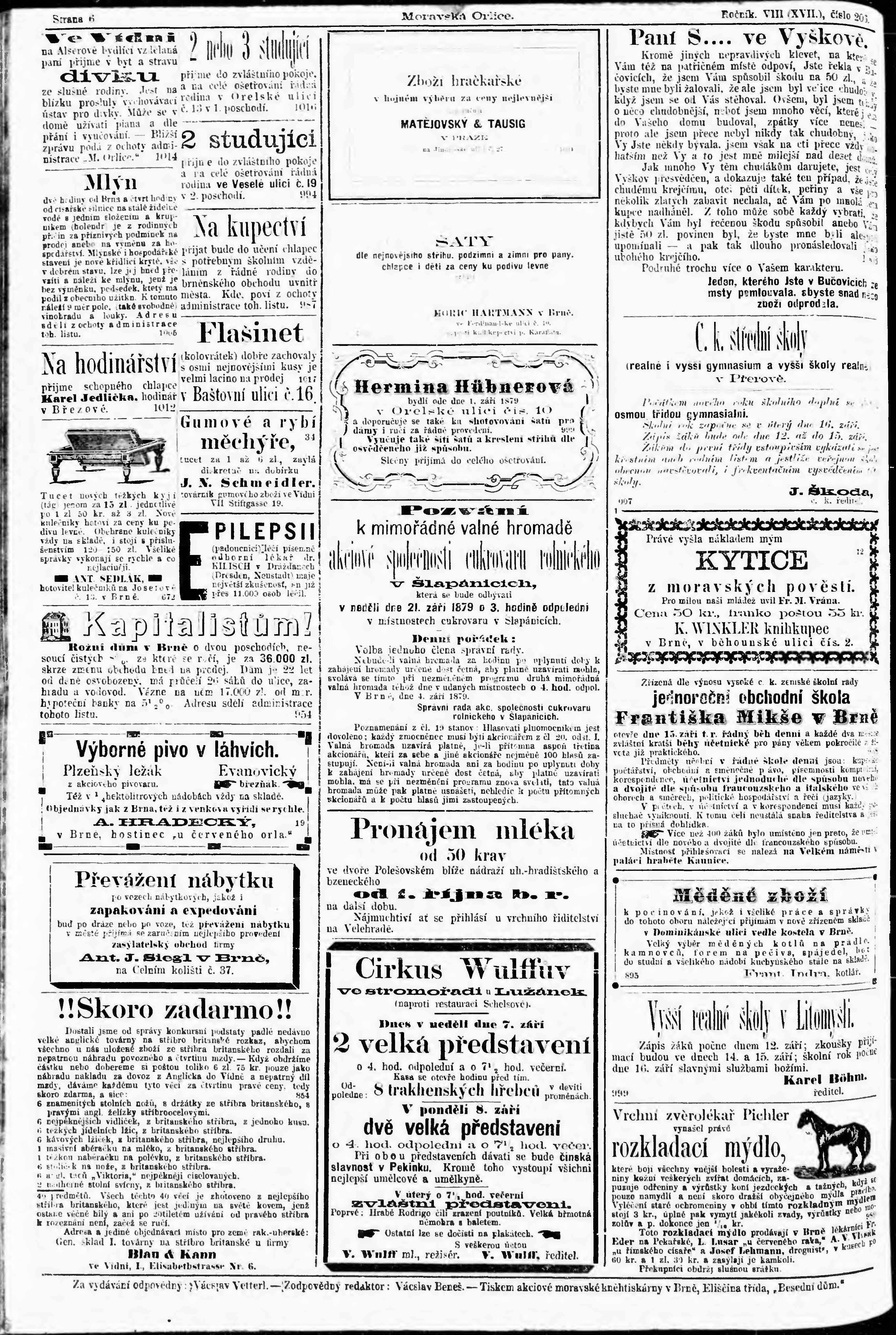 * Datum vydání výtisku: 7.9.1879 Číslo výtisku: 206