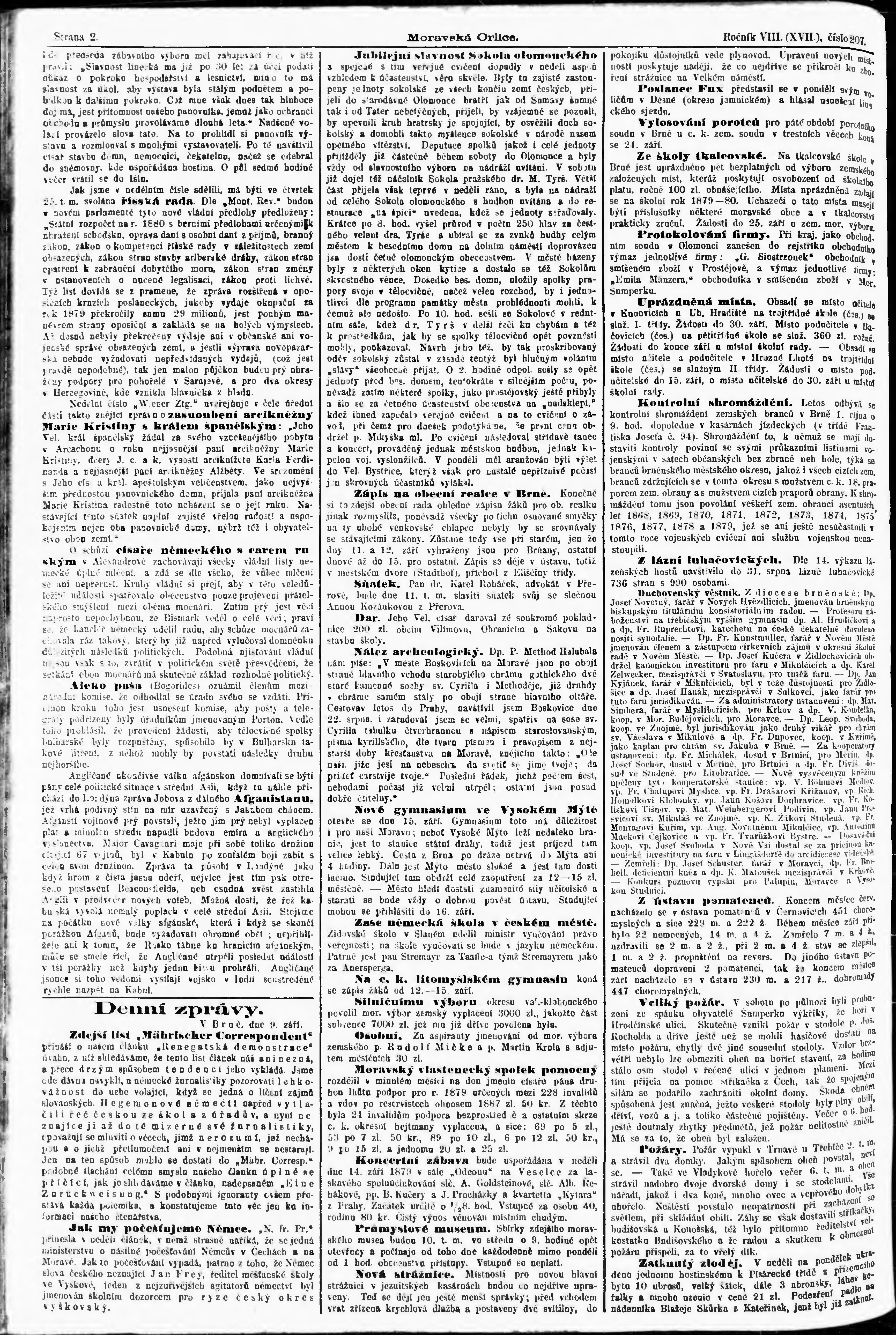 * Datum vydání výtisku: 10.9.1879 Číslo výtisku: 207