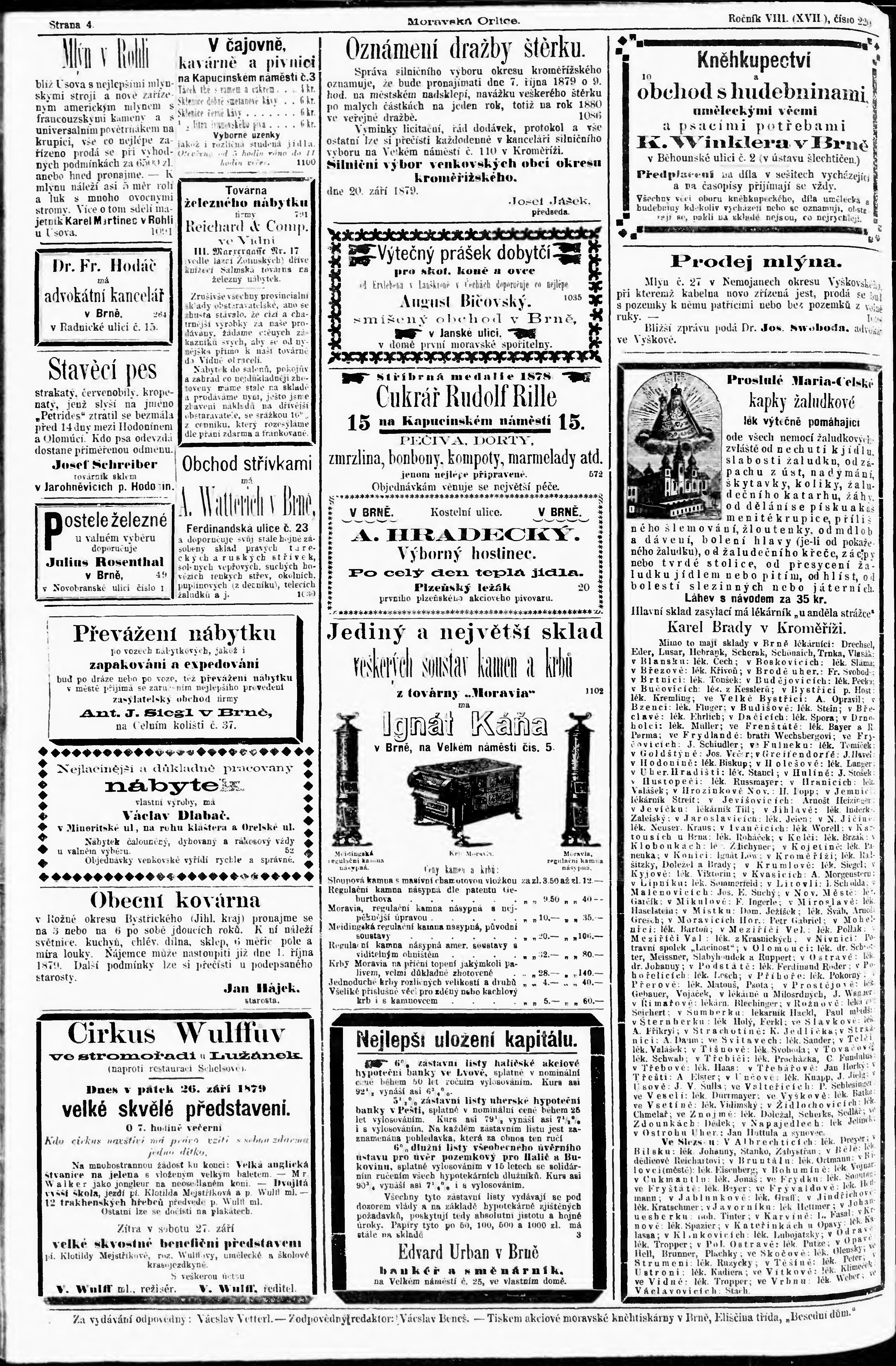 * Datum vydání výtisku: 26.9.1879 Číslo výtisku: 221