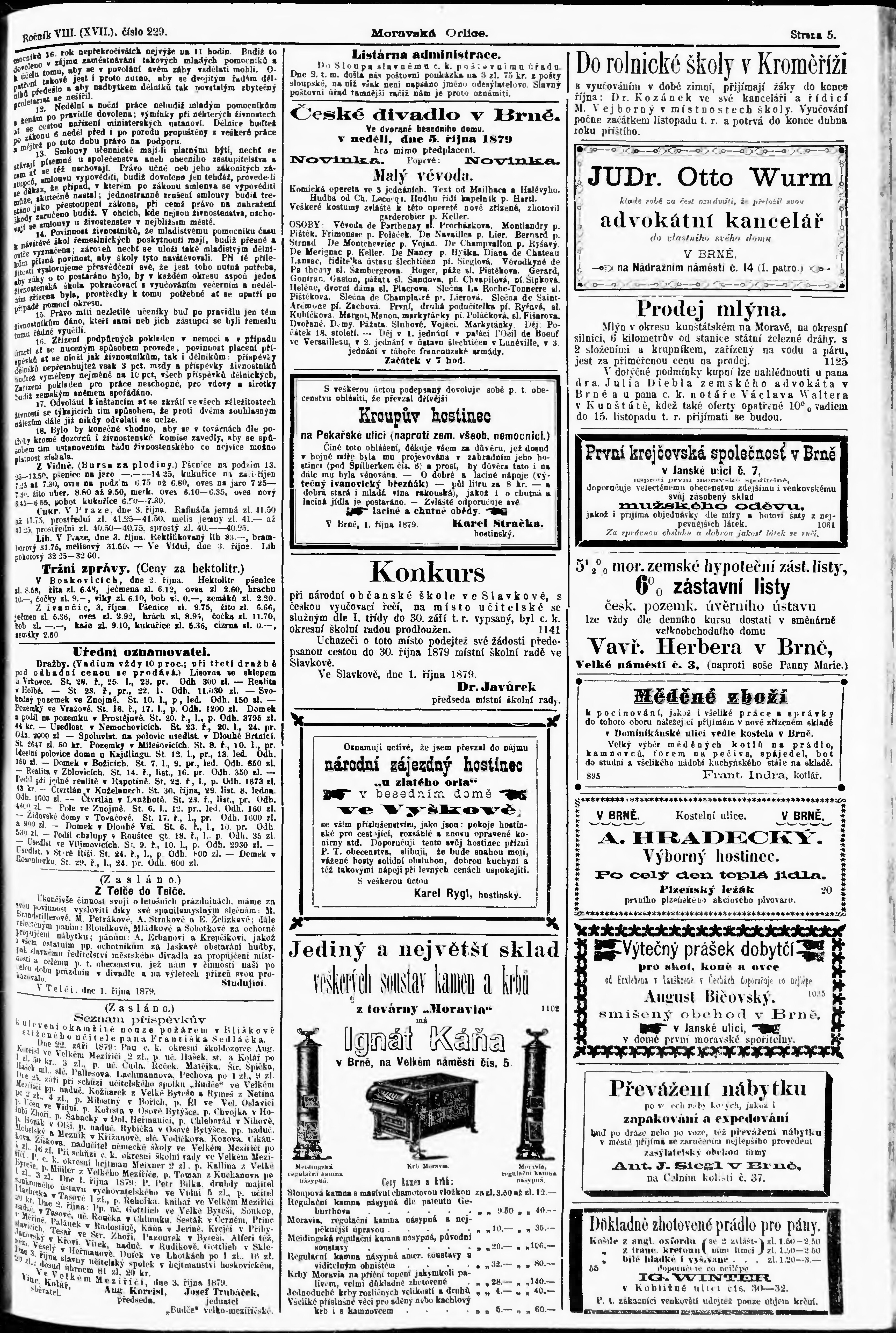 * Datum vydání výtisku: 5.10.1879 Číslo výtisku: 229
