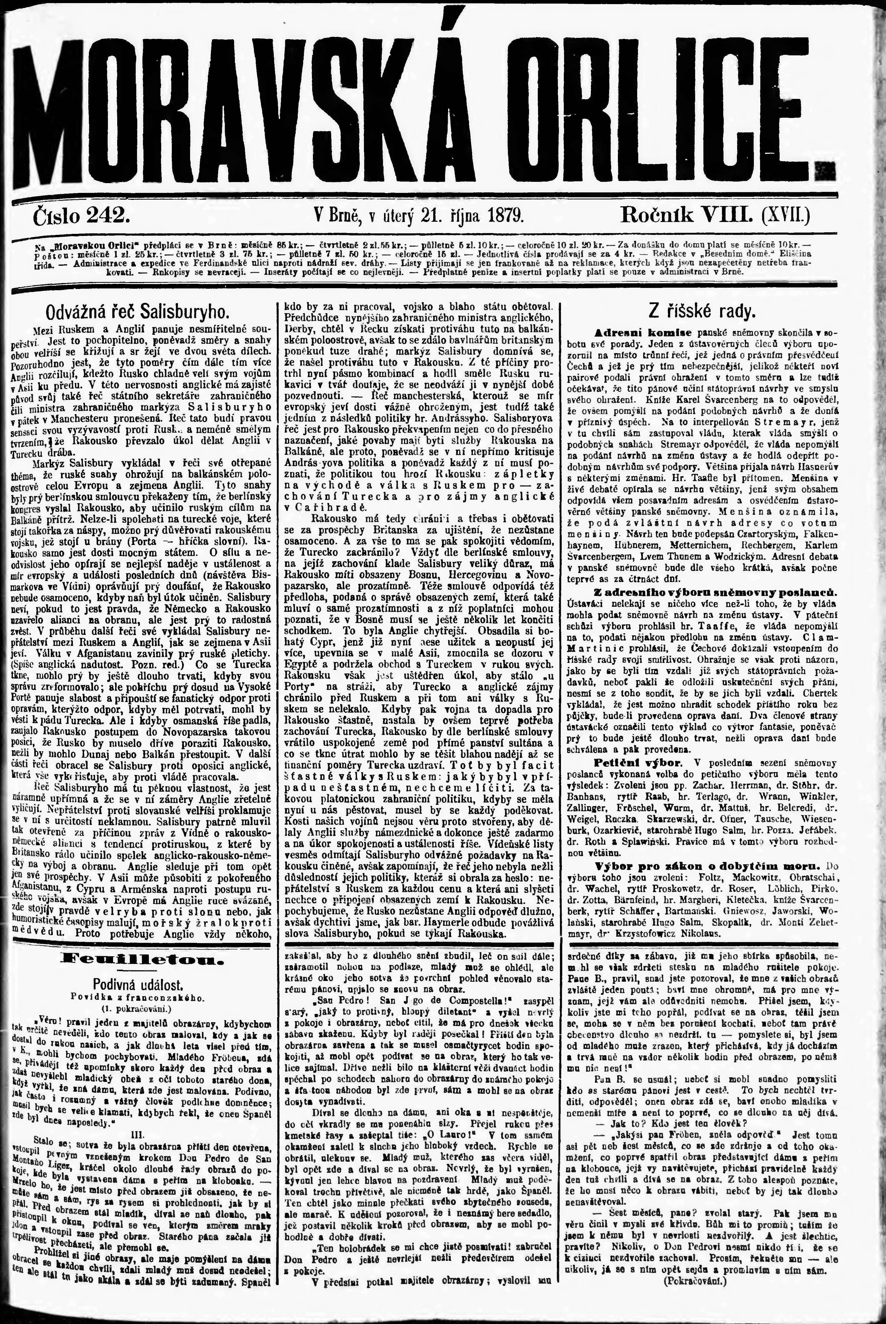 * Datum vydání výtisku: 21.10.1879 Číslo výtisku: 242