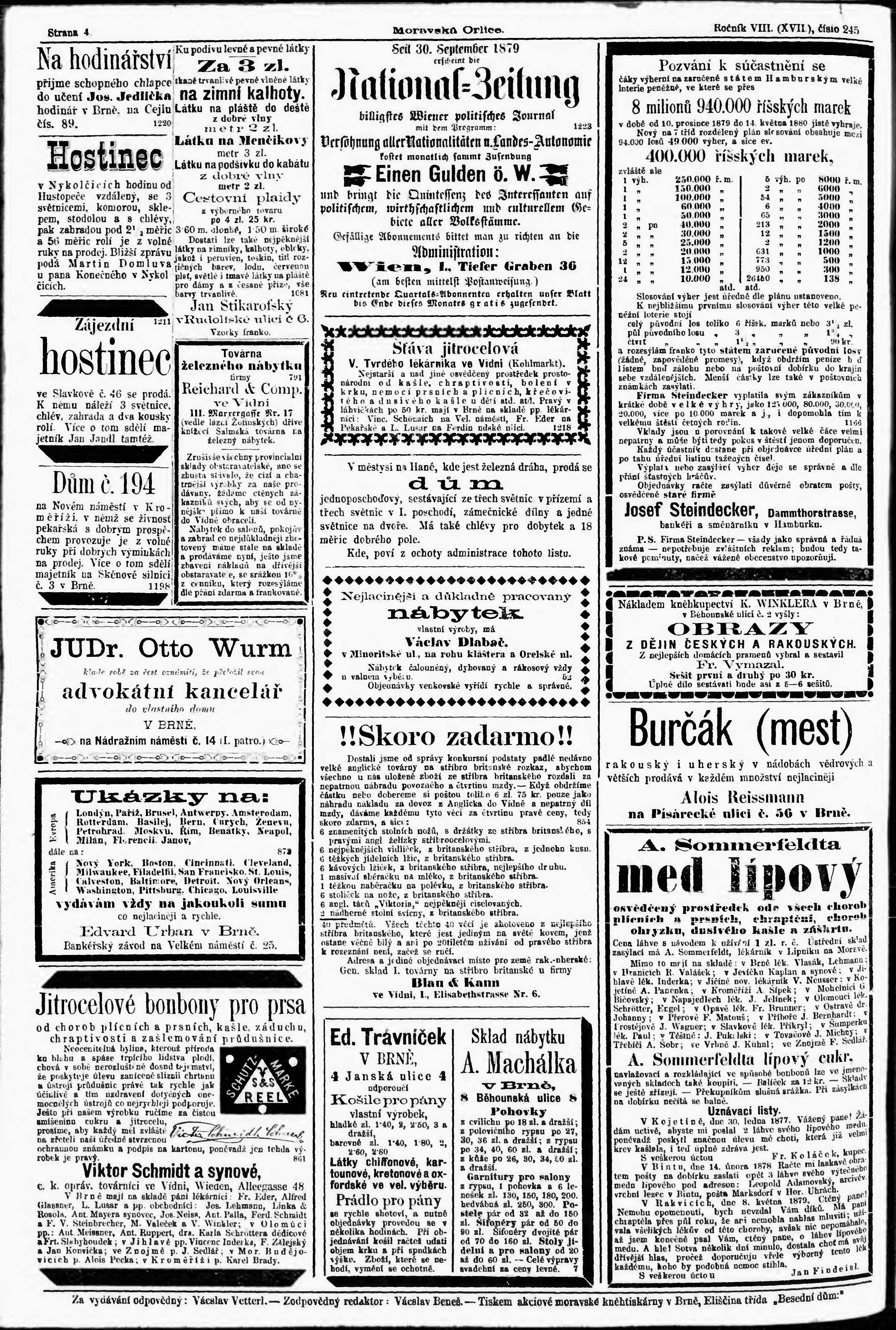 * Datum vydání výtisku: 24.10.1879 Číslo výtisku: 245