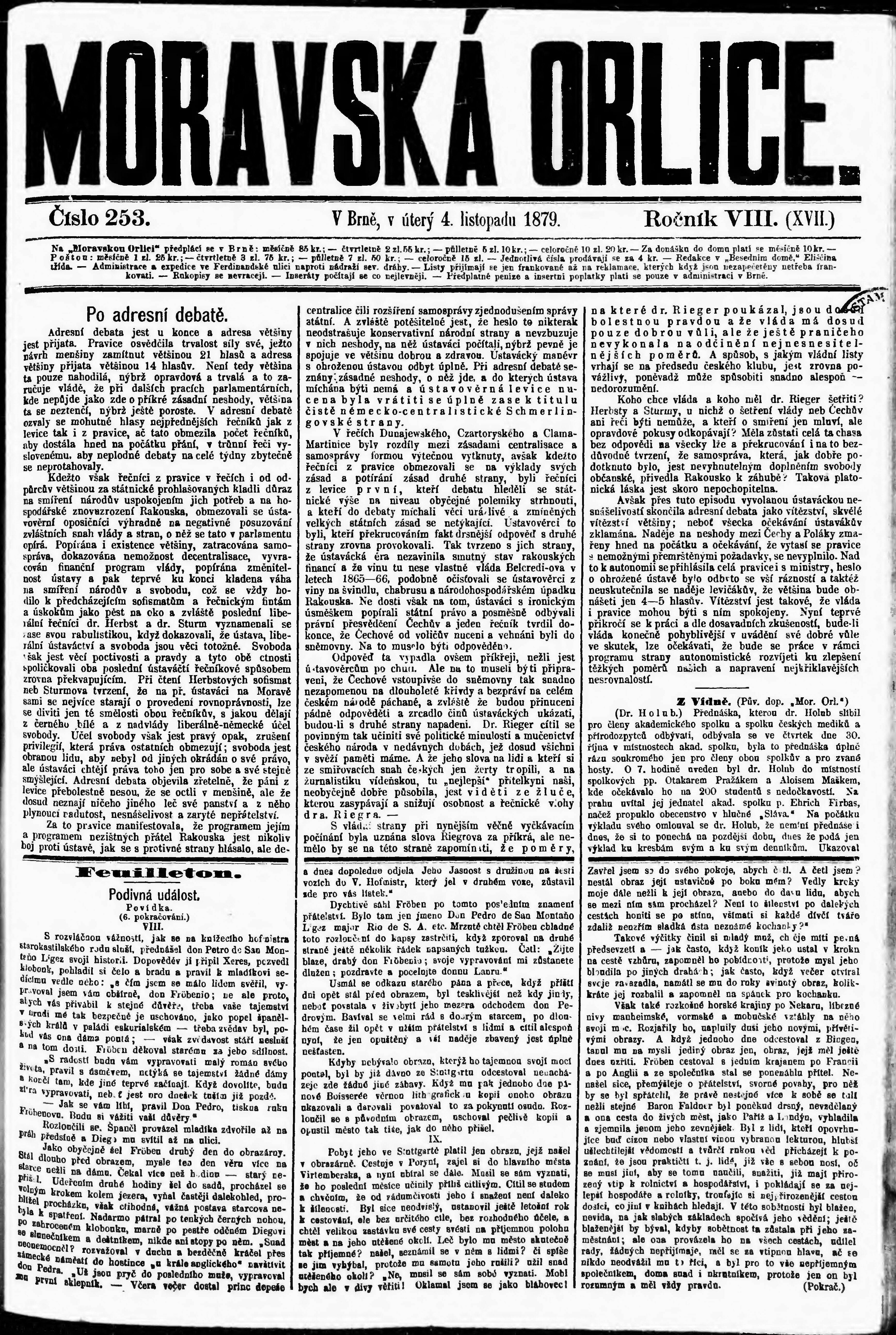 * Datum vydání výtisku: 4.11.1879 Číslo výtisku: 253