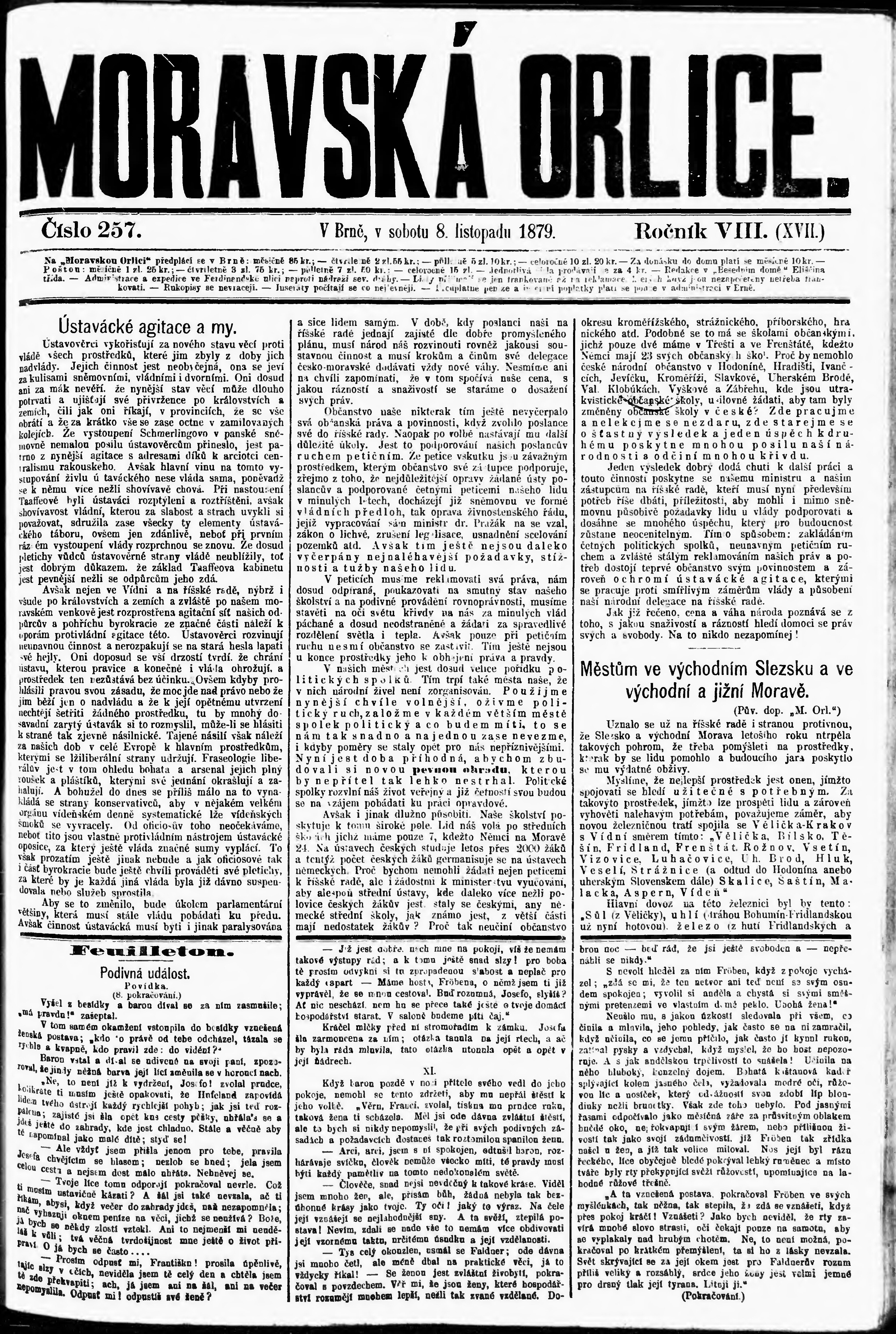 * Datum vydání výtisku: 8.11.1879 Číslo výtisku: 257