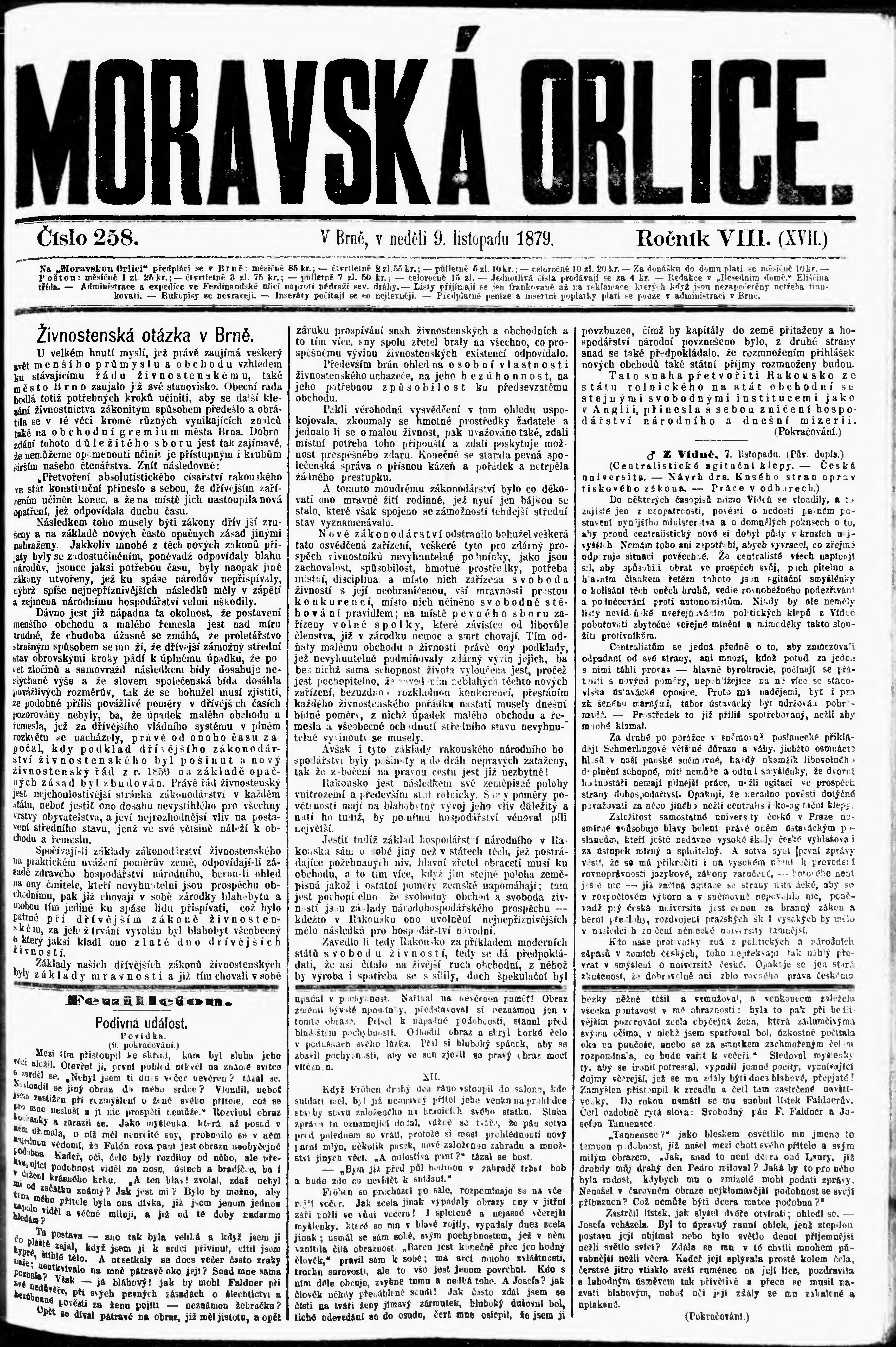 * Datum vydání výtisku: 9.11.1879 Číslo výtisku: 258