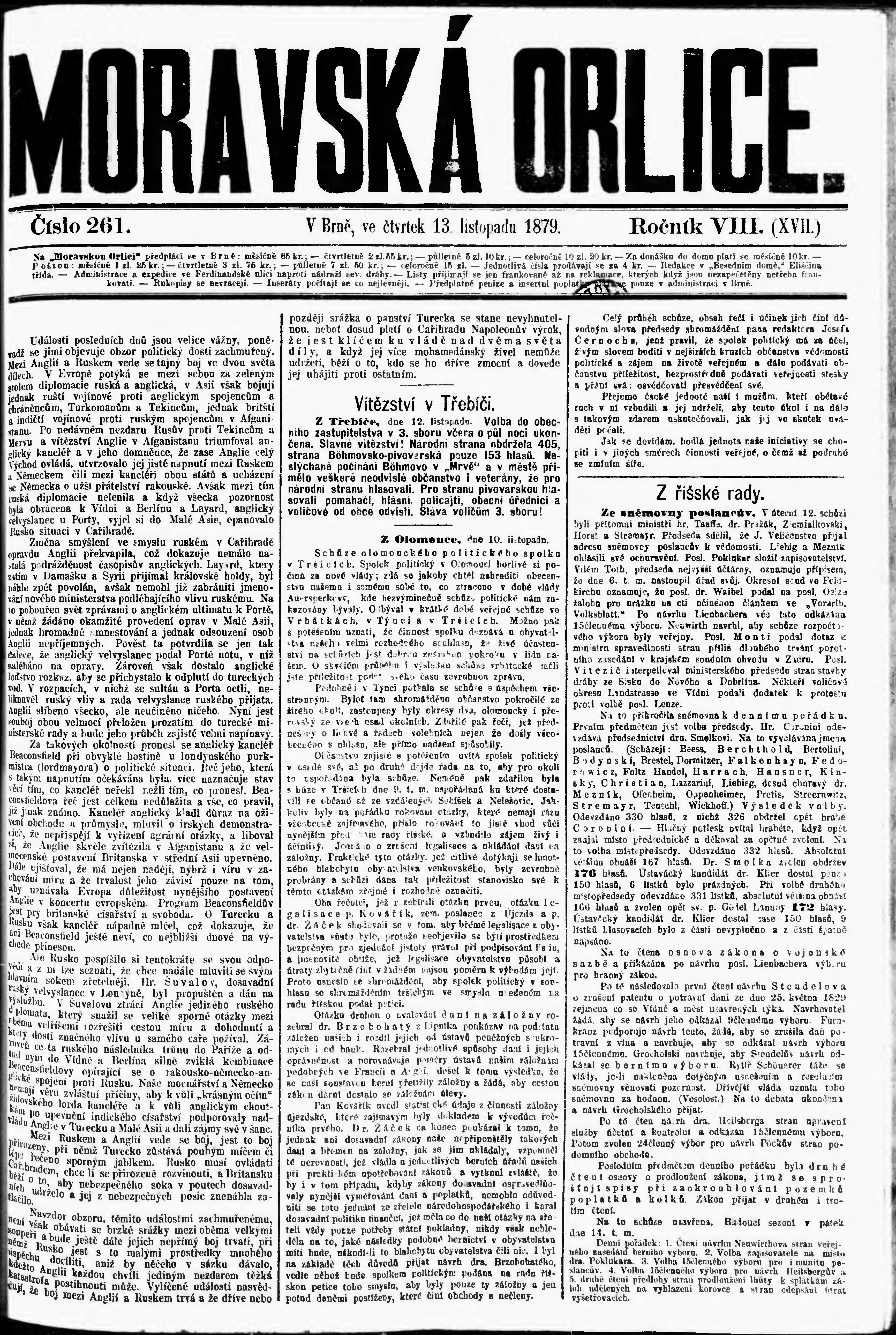 * Datum vydání výtisku: 13.11.1879 Číslo výtisku: 261
