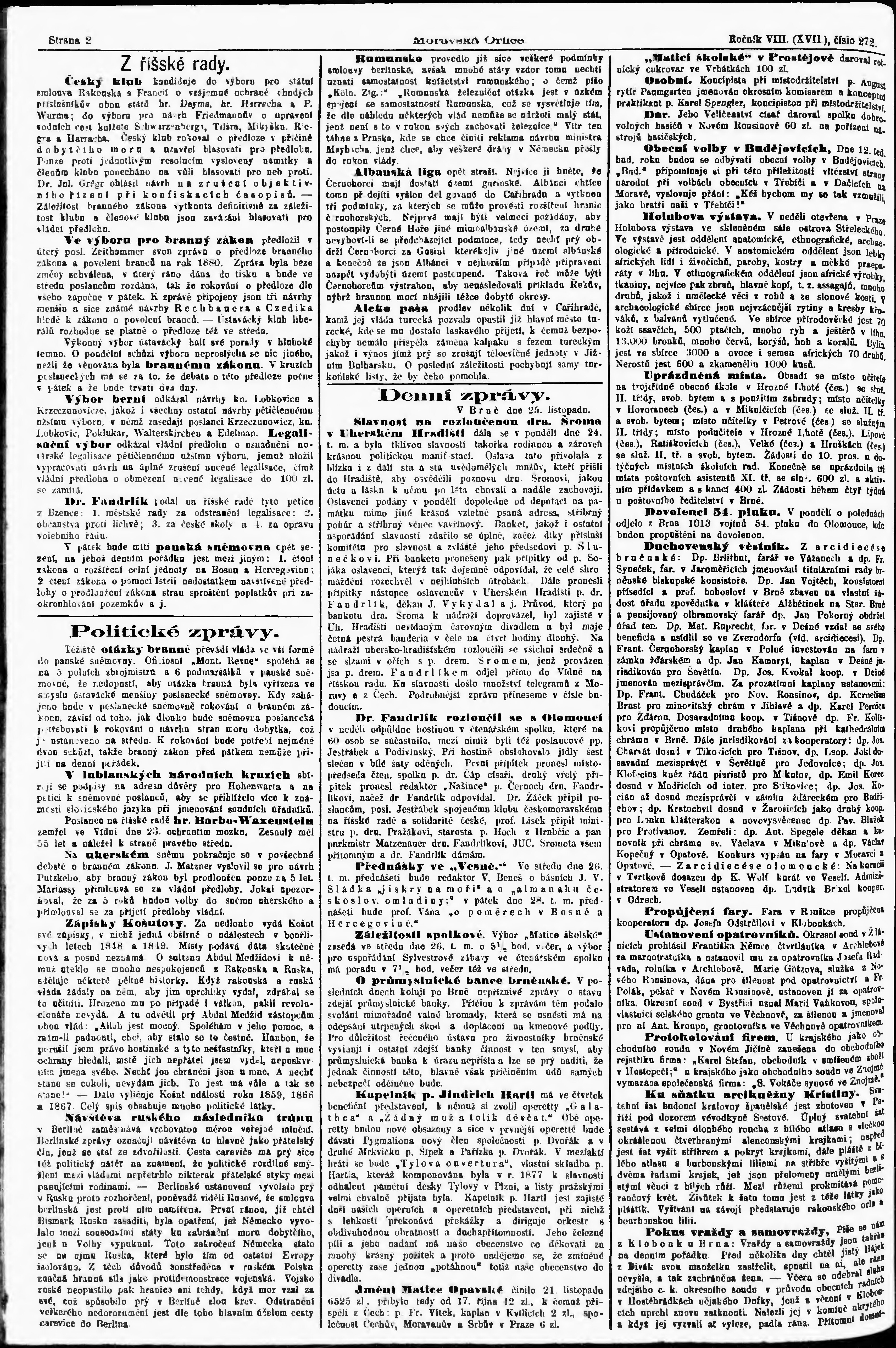 * Datum vydání výtisku: 26.11.1879 Číslo výtisku: 272
