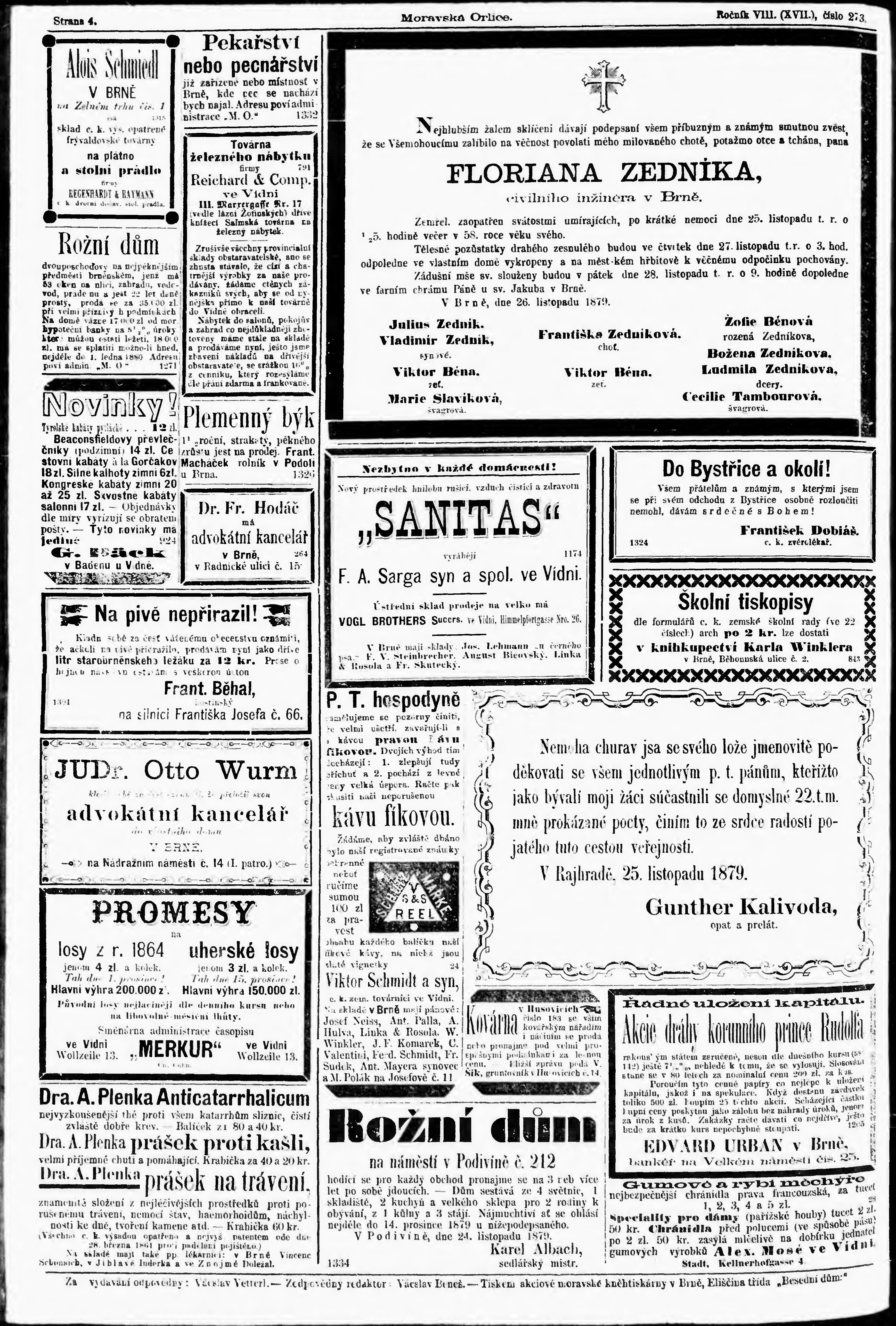* Datum vydání výtisku: 27.11.1879 Číslo výtisku: 273