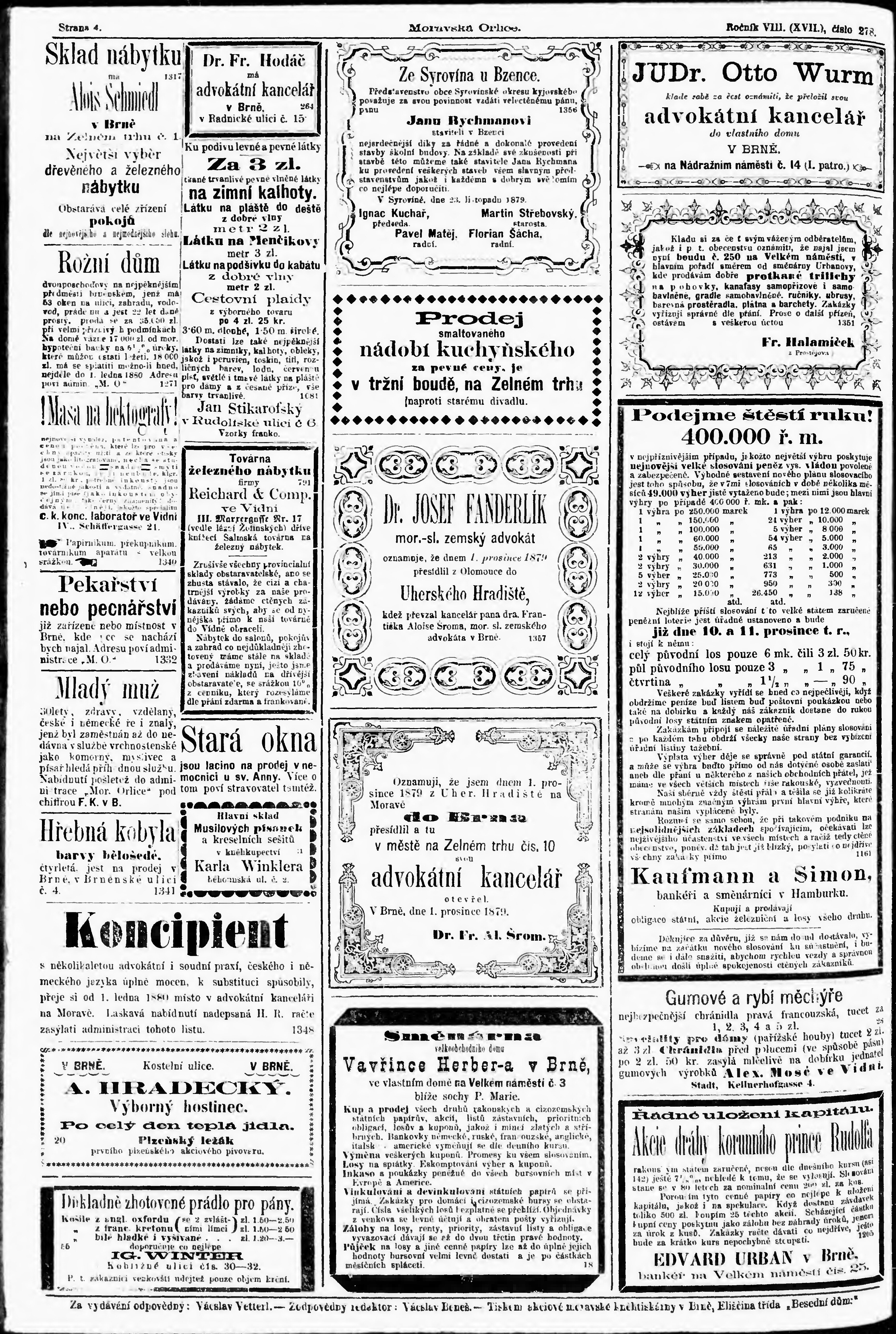 * Datum vydání výtisku: 3.12.1879 Číslo výtisku: 278
