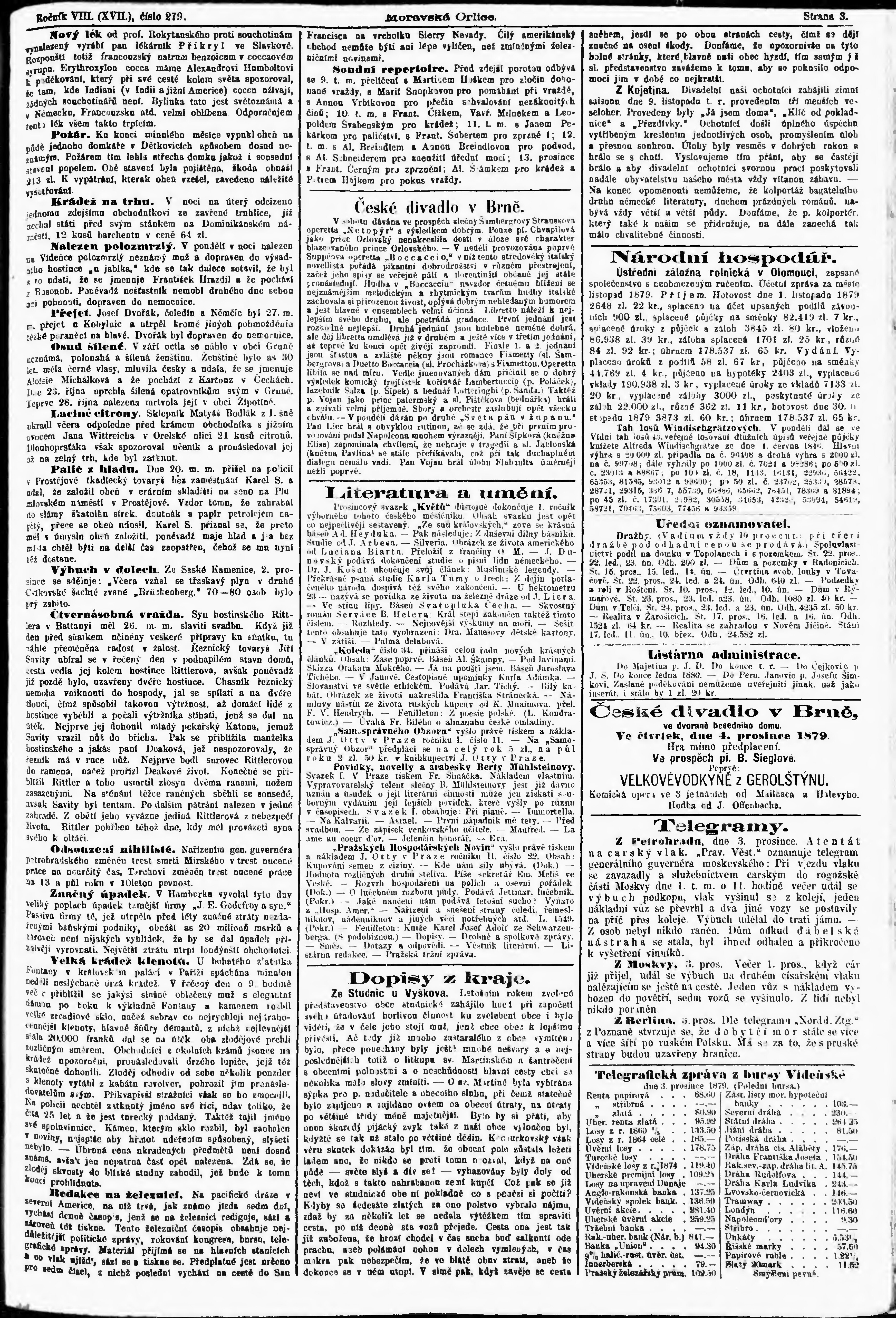 * Datum vydání výtisku: 4.12.1879 Číslo výtisku: 279