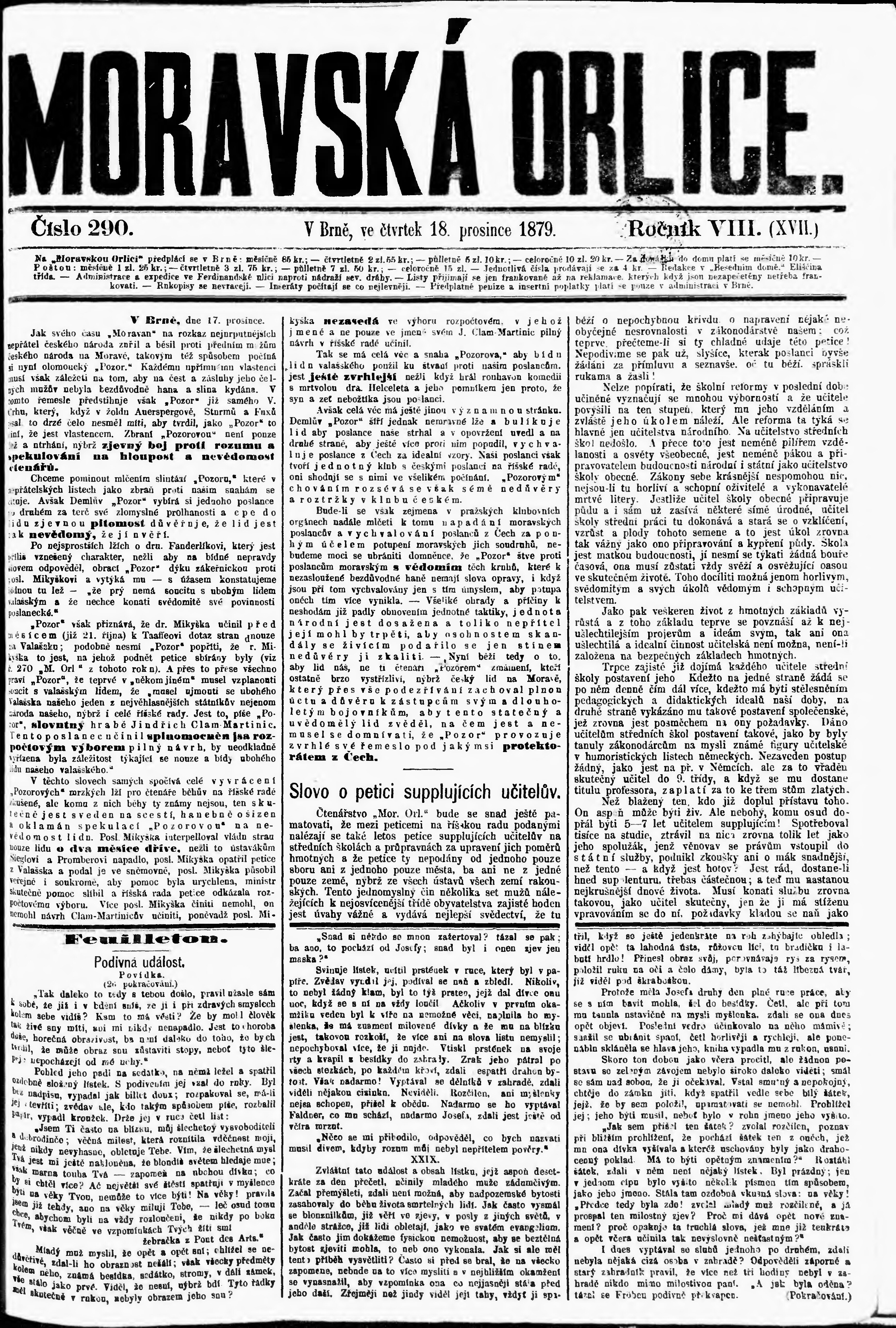 * Datum vydání výtisku: 18.12.1879 Číslo výtisku: 290