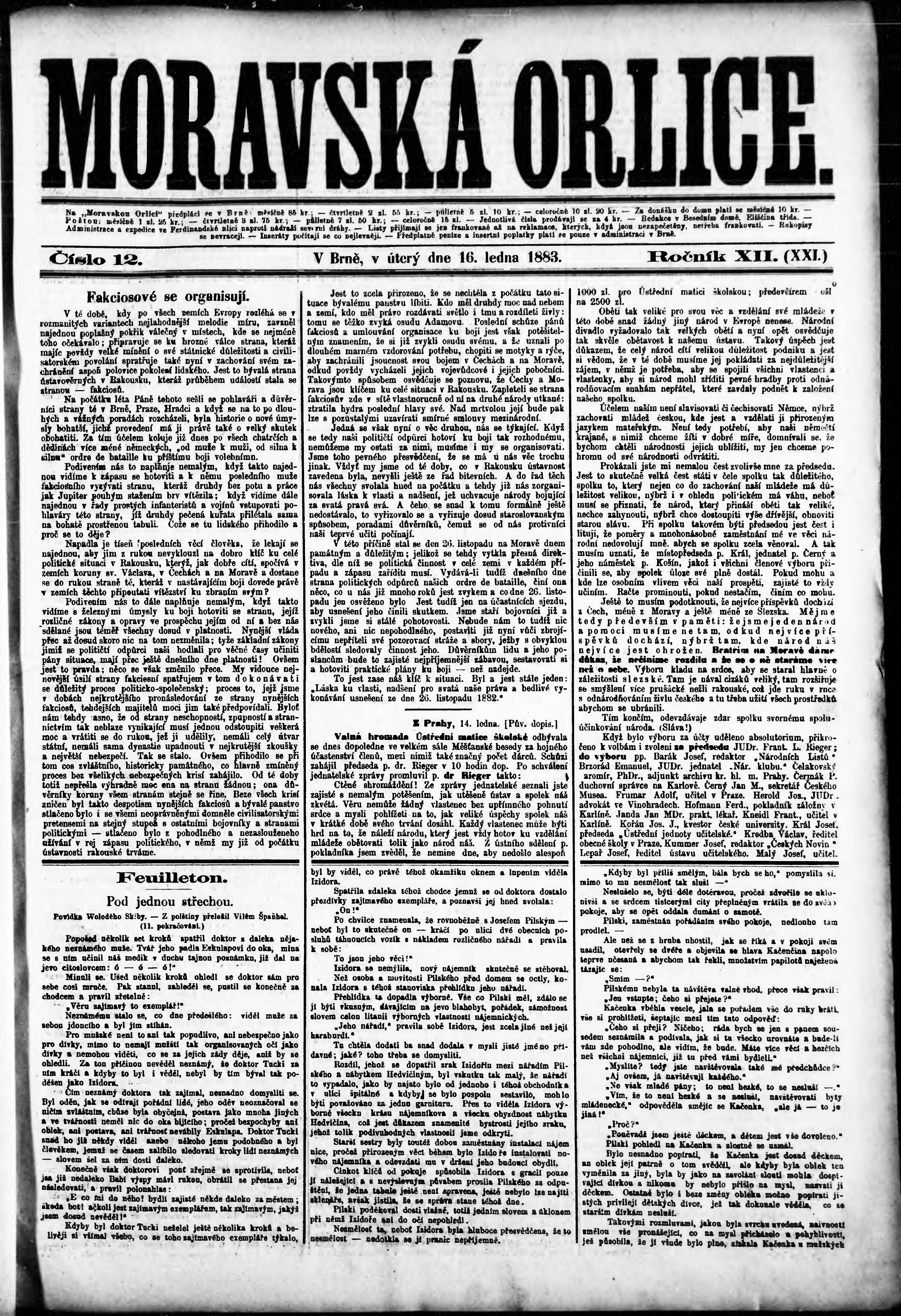 * Datum vydání výtisku: 16.1.1883 Číslo výtisku: 12