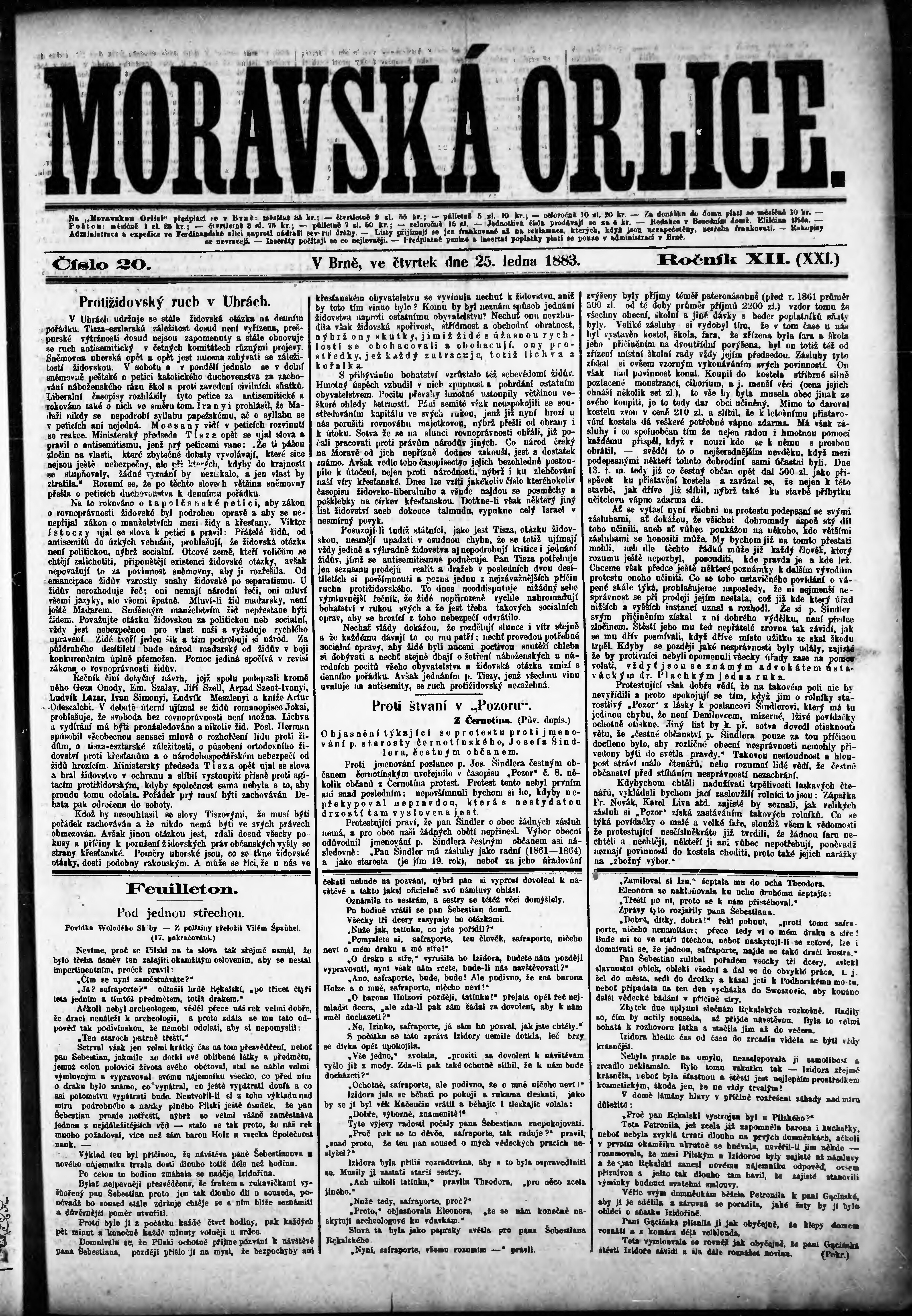 * Datum vydání výtisku: 25.1.1883 Číslo výtisku: 20