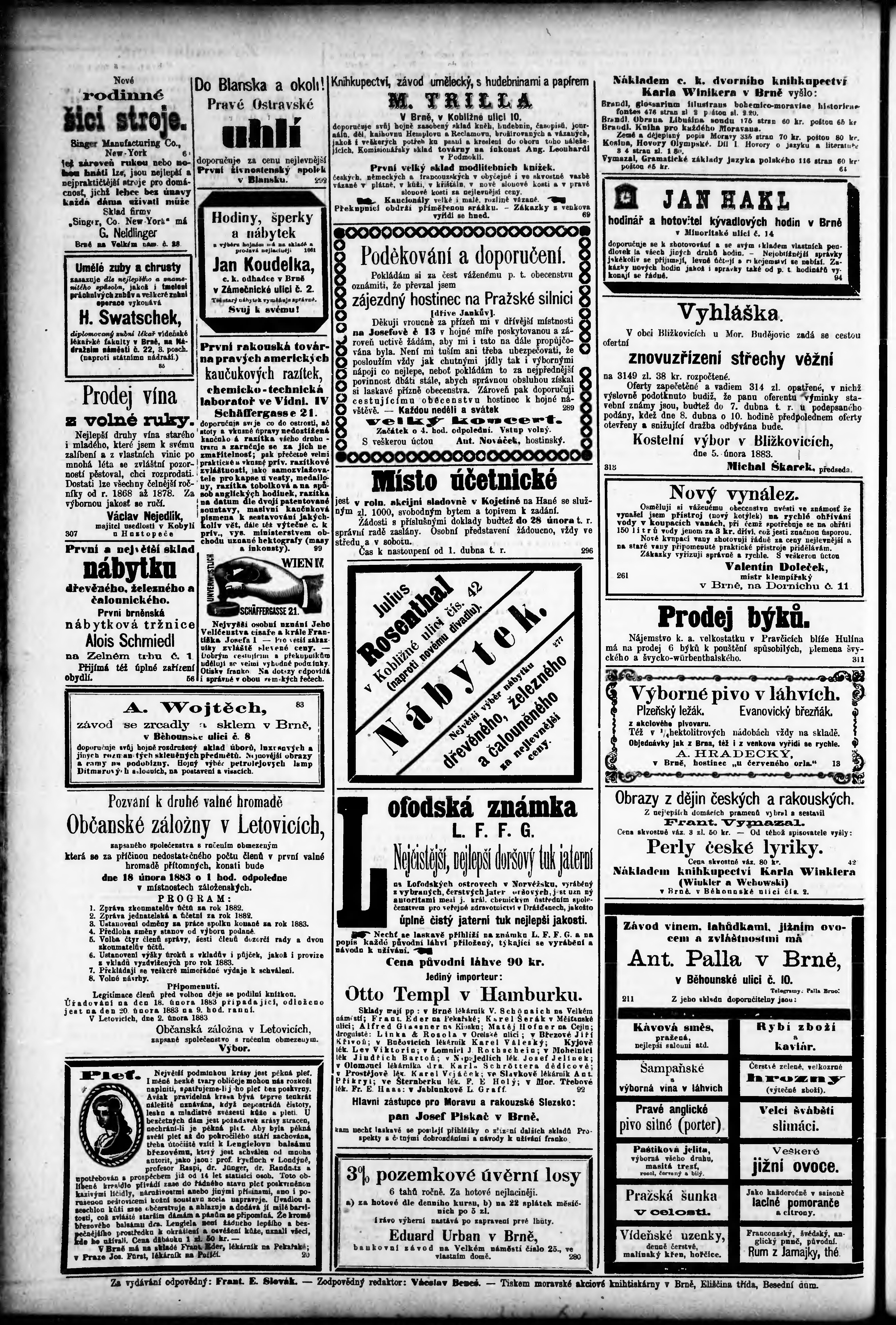 * Datum vydání výtisku: 7.2.1883 Číslo výtisku: 30