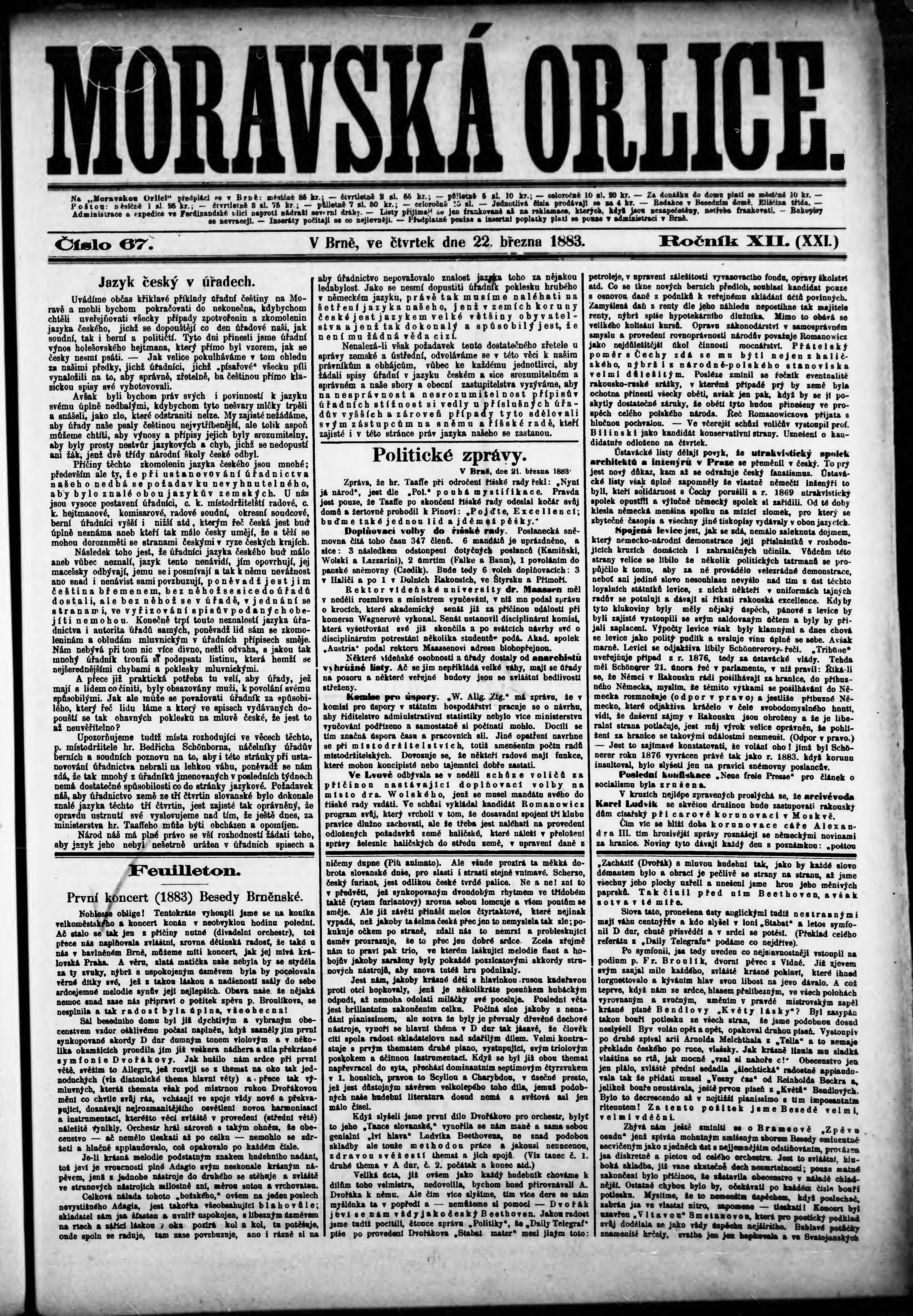* Datum vydání výtisku: 22.3.1883 Číslo výtisku: 67