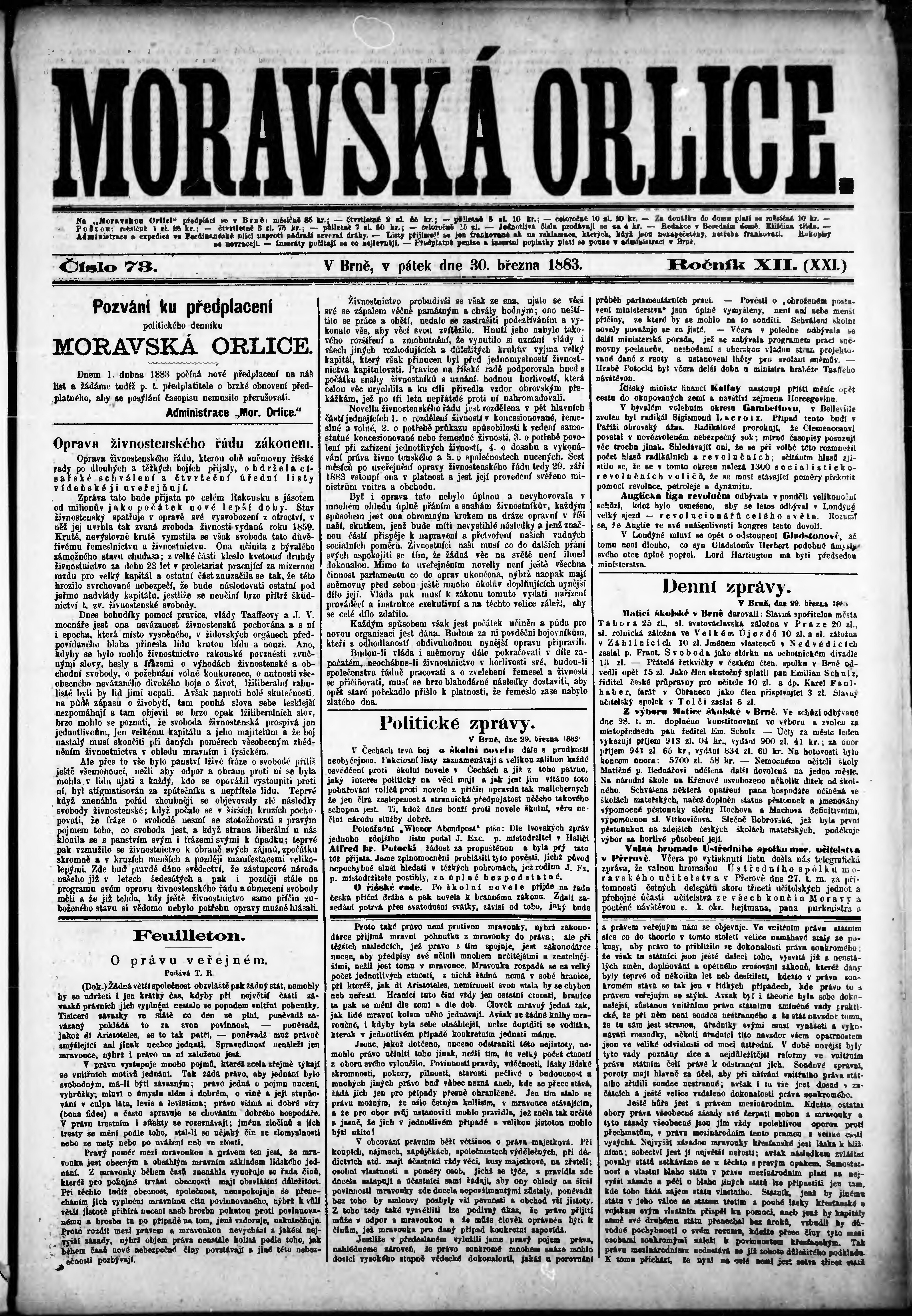 * Datum vydání výtisku: 30.3.1883 Číslo výtisku: 73