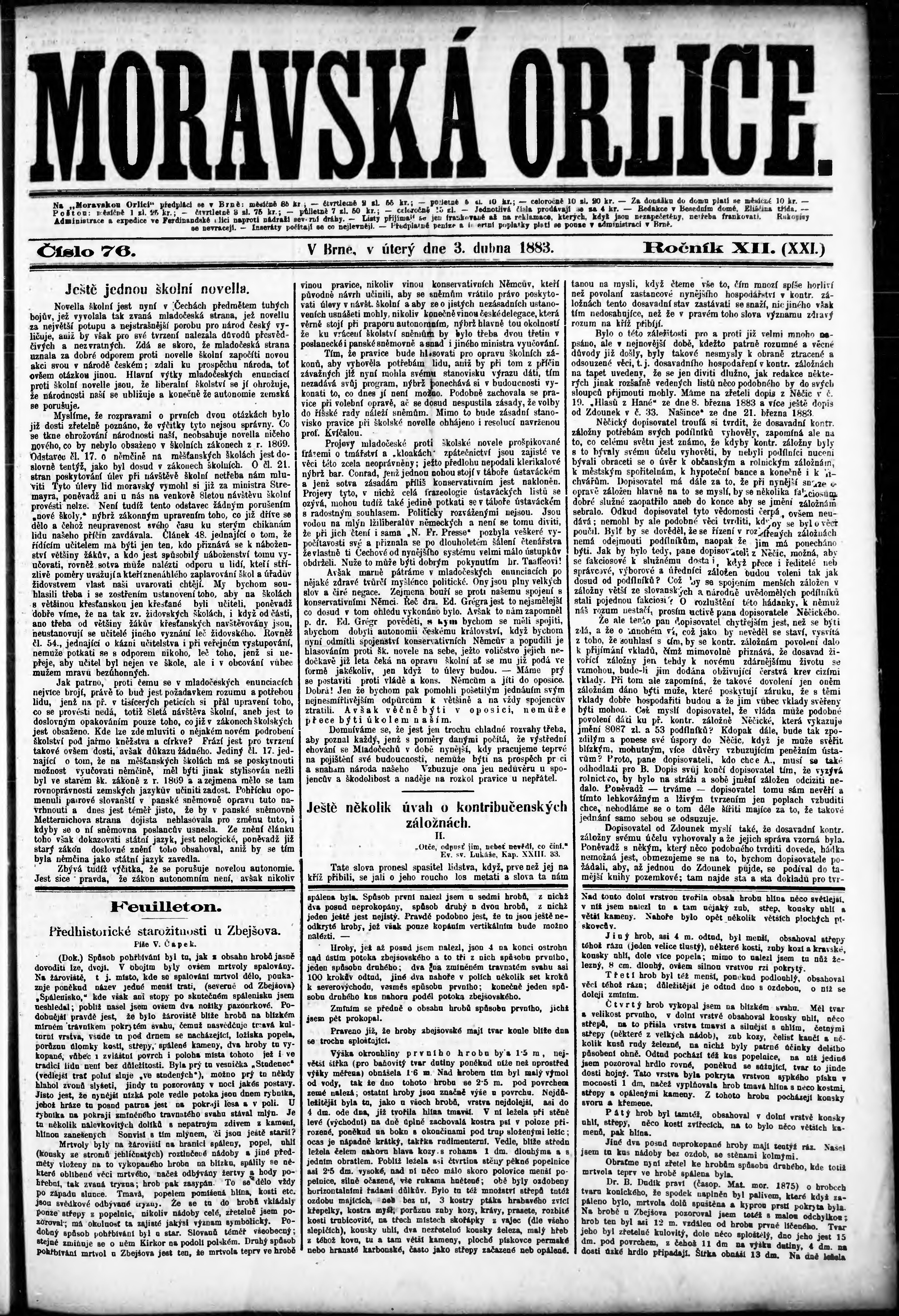 * Datum vydání výtisku: 3.4.1883 Číslo výtisku: 76