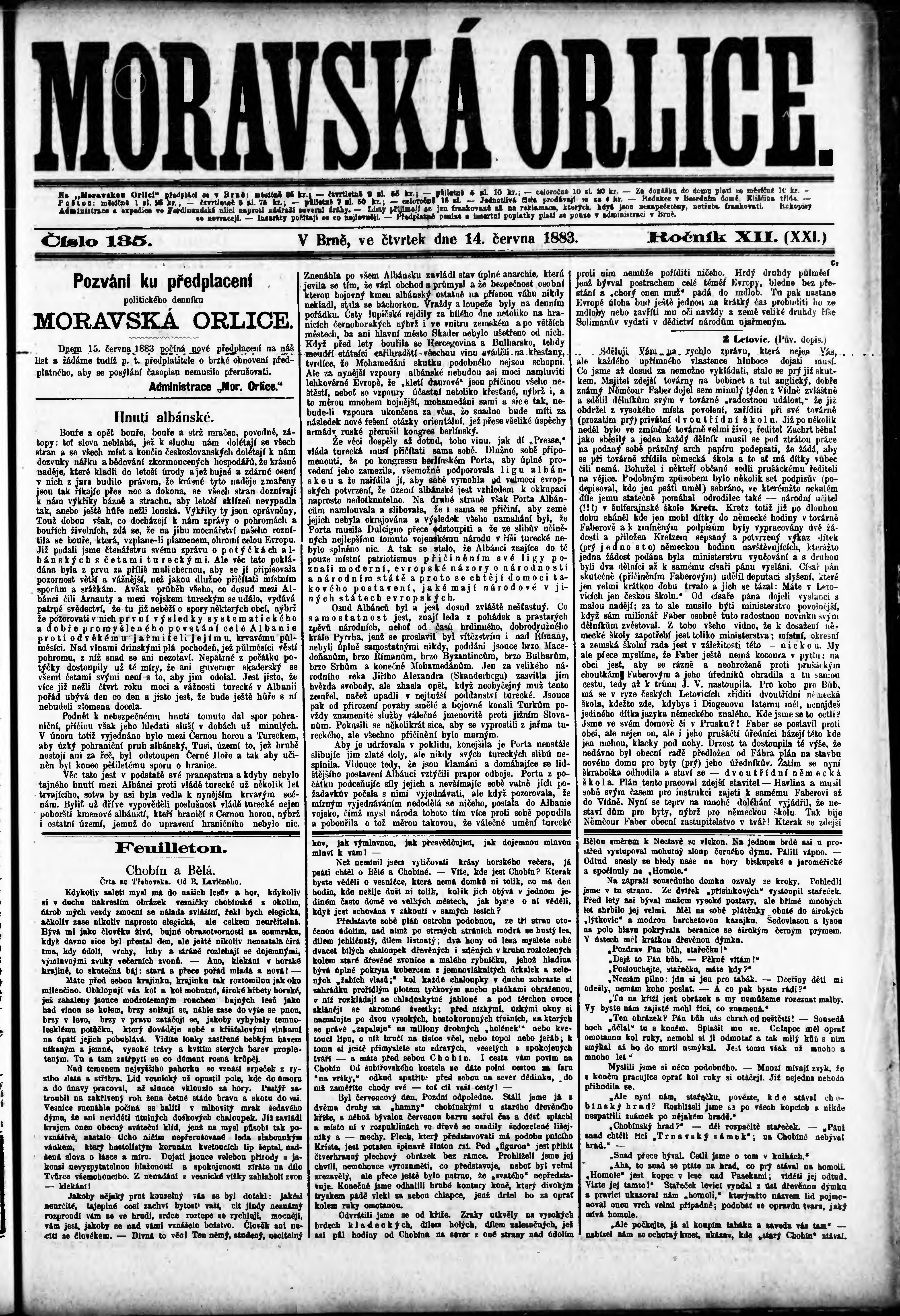 * Datum vydání výtisku: 14.6.1883 Číslo výtisku: 135