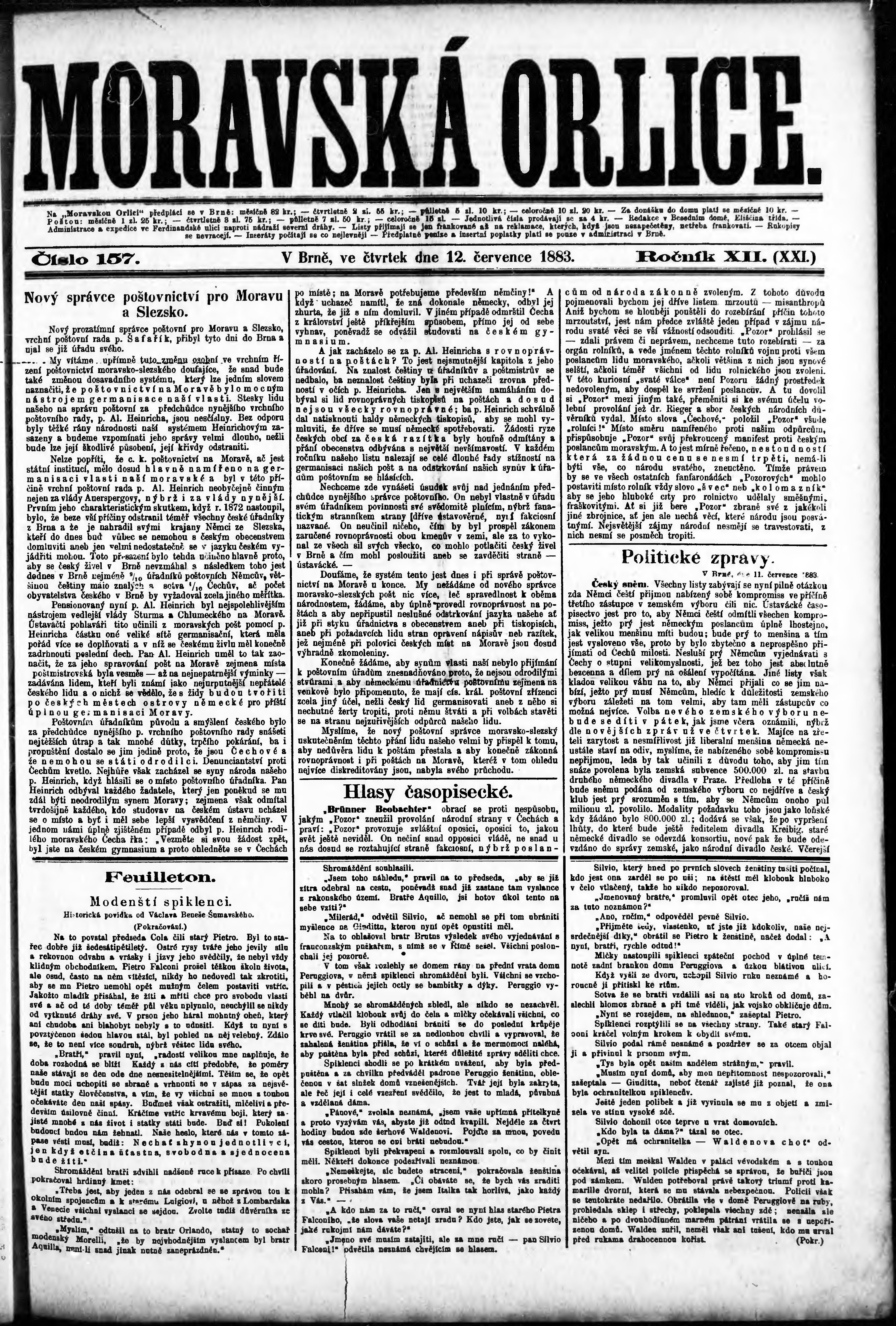 * Datum vydání výtisku: 12.7.1883 Číslo výtisku: 157