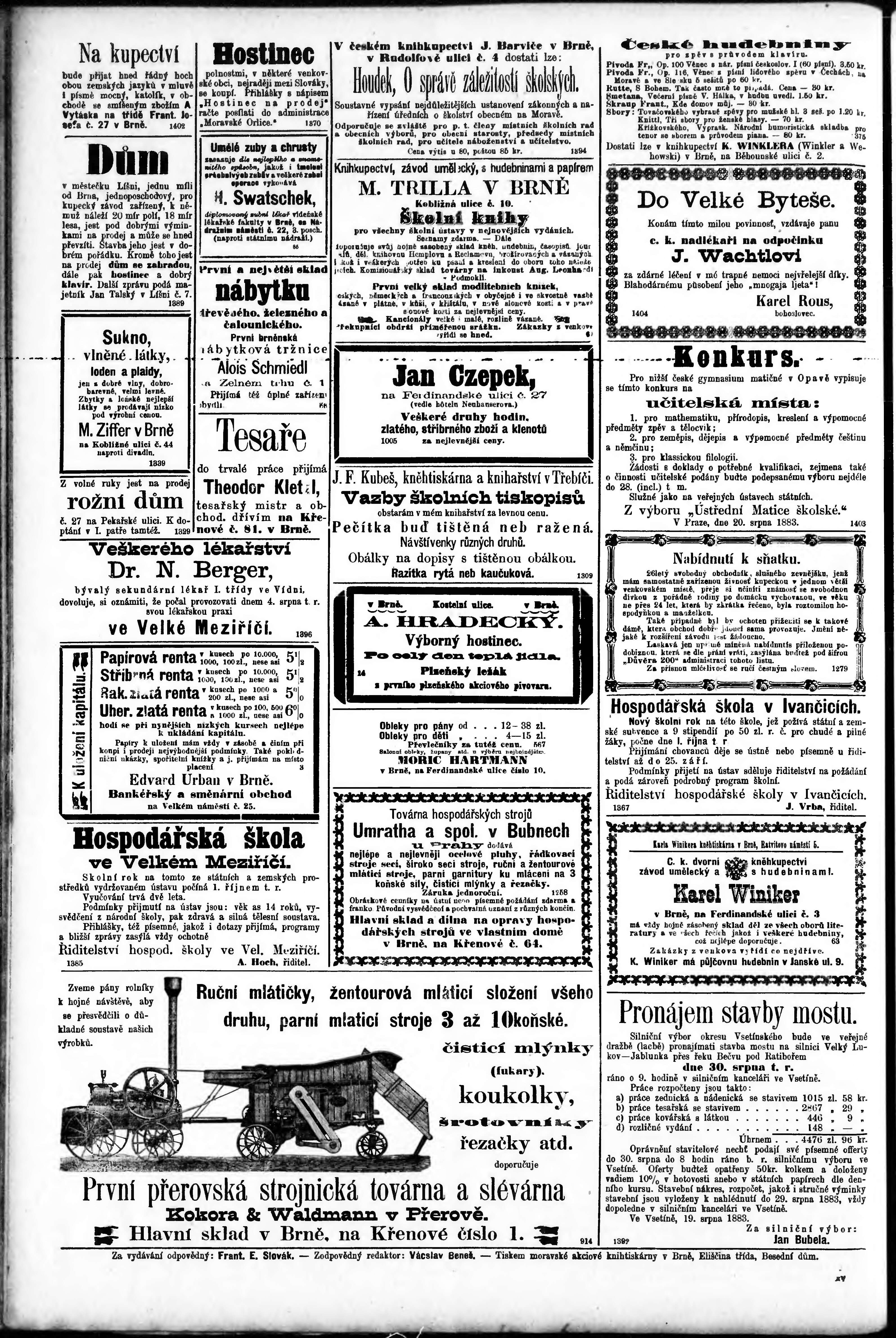 * Datum vydání výtisku: 23.8.1883 Číslo výtisku: 192