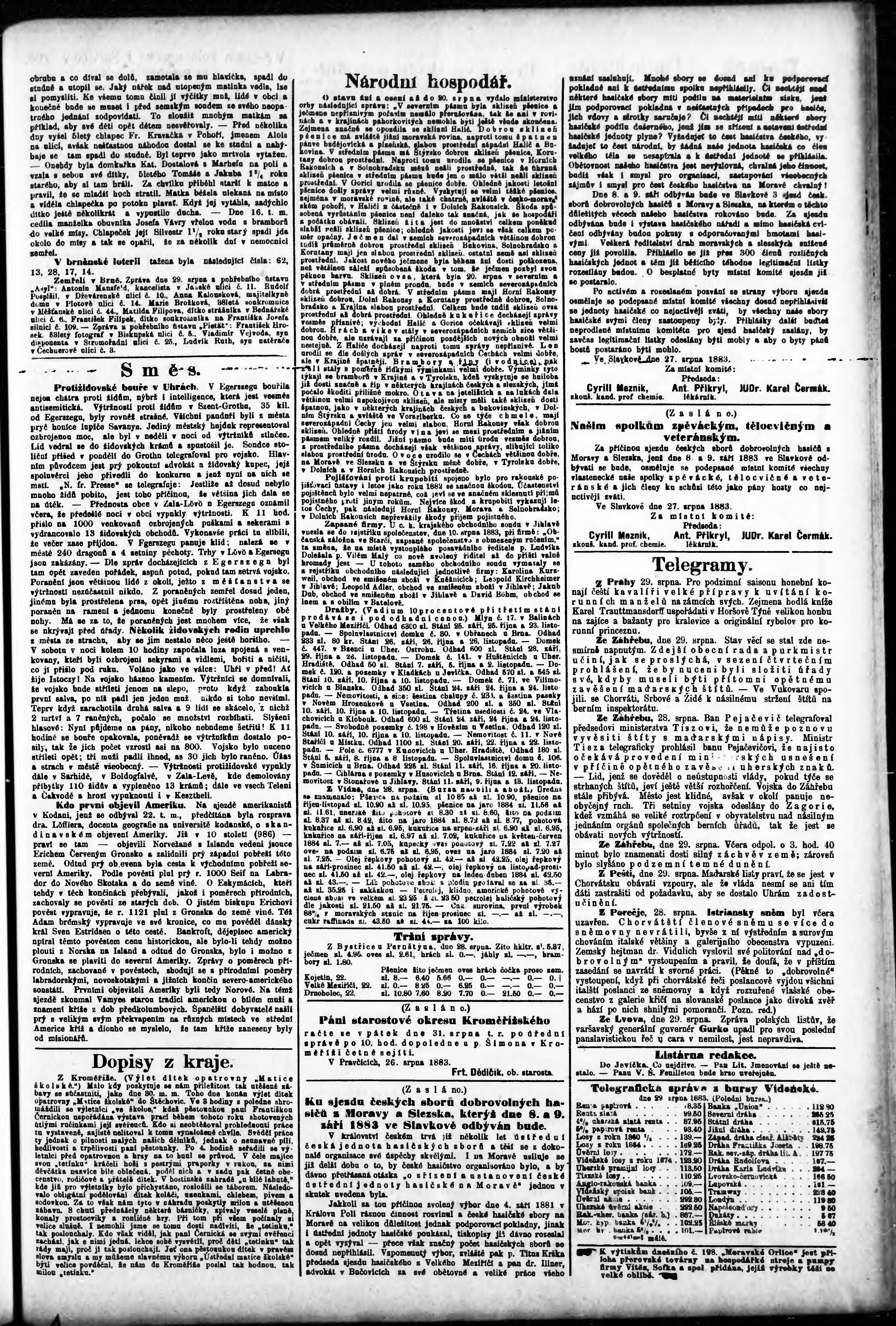 * Datum vydání výtisku: 30.8.1883 Číslo výtisku: 198
