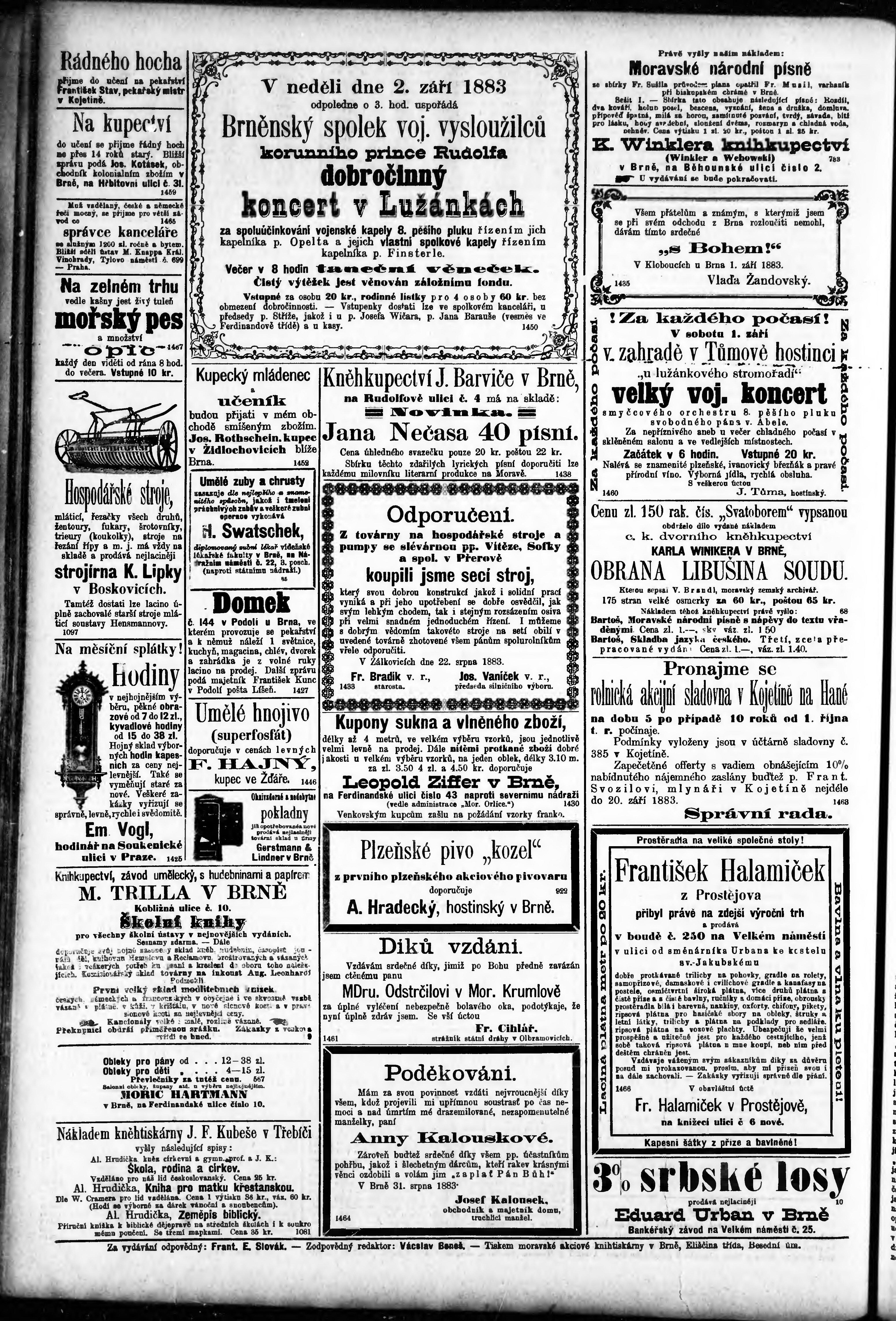 * Datum vydání výtisku: 1.9.1883 Číslo výtisku: 200