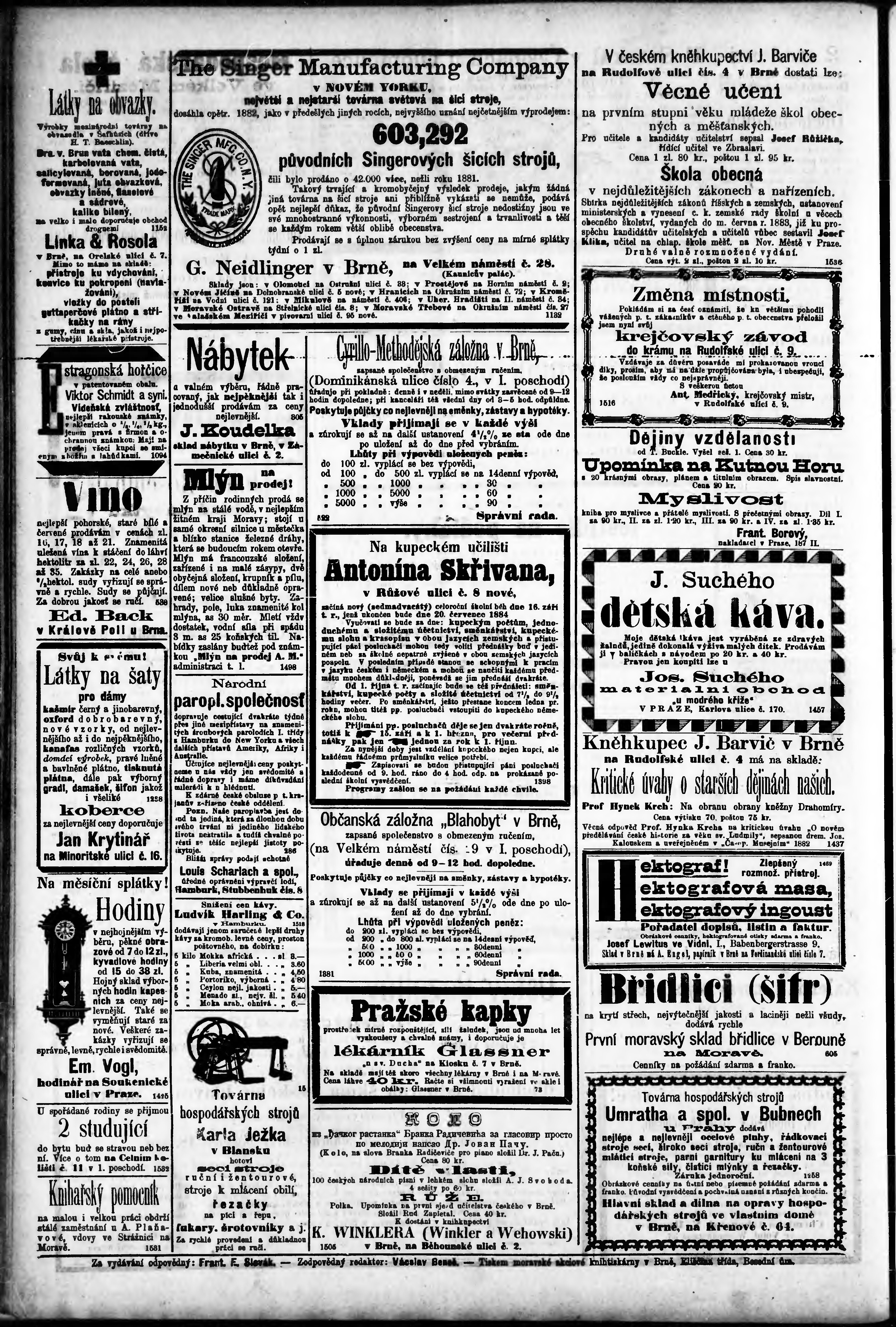 * Datum vydání výtisku: 8.9.1883 Číslo výtisku: 206