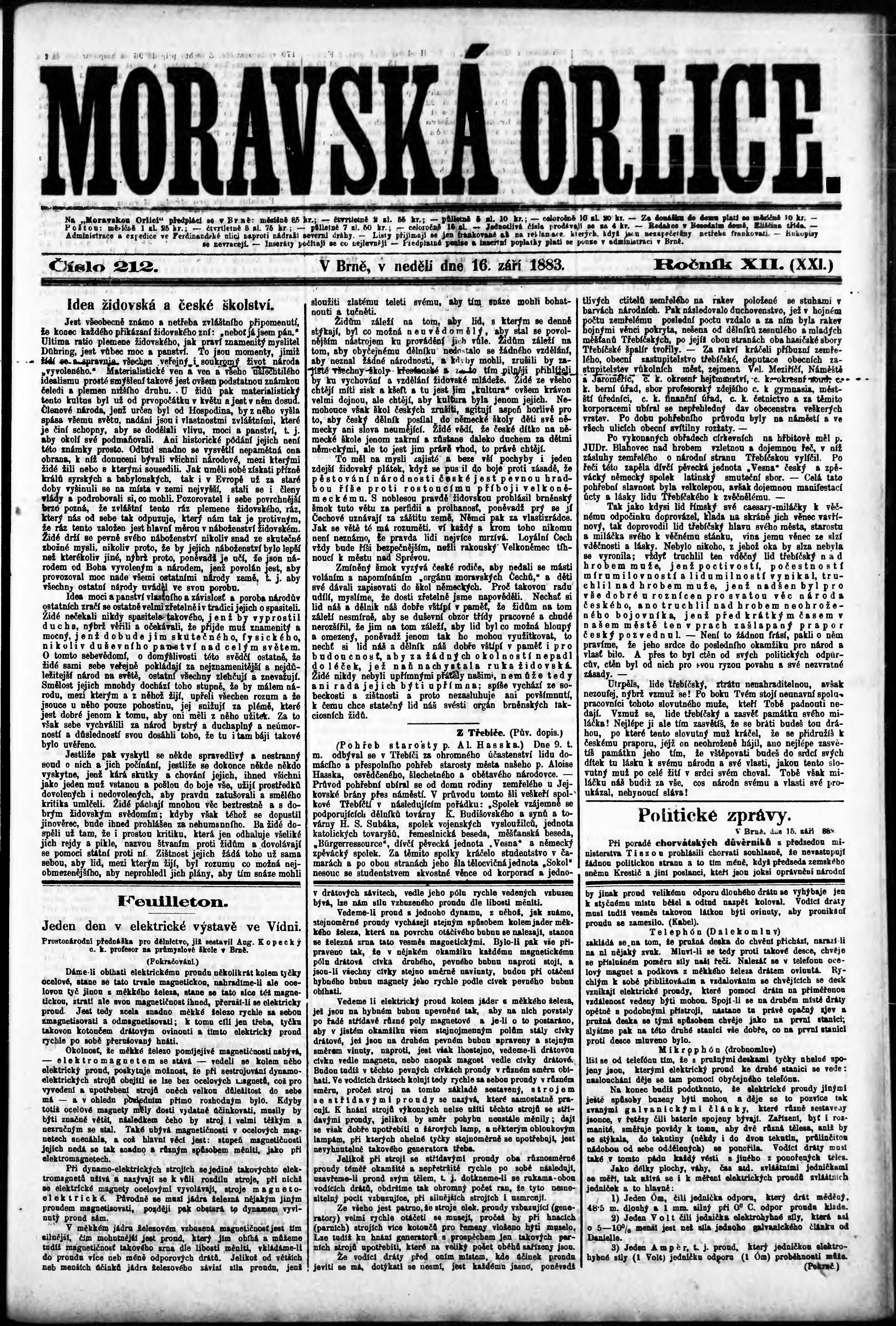 * Datum vydání výtisku: 16.9.1883 Číslo výtisku: 212