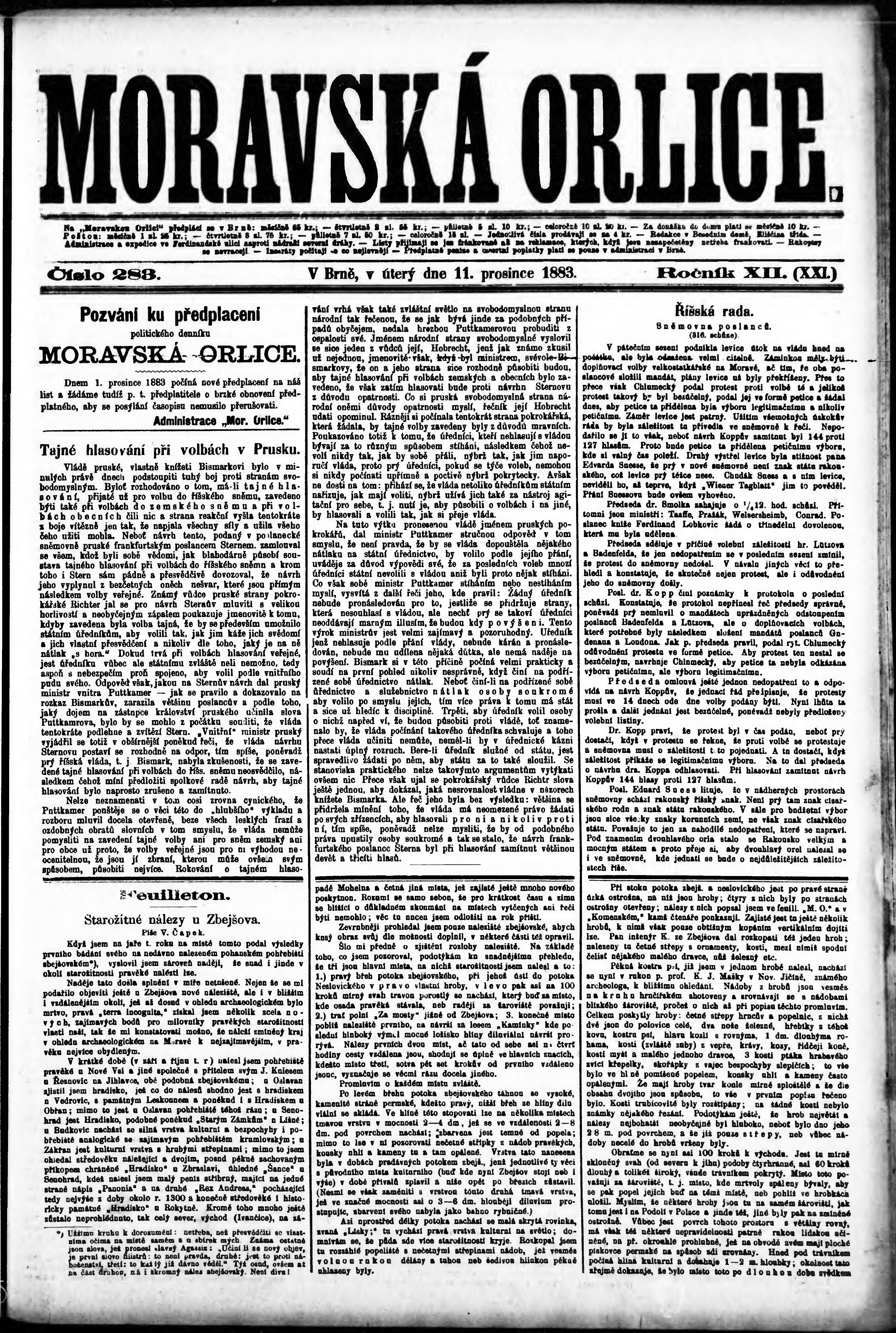 * Datum vydání výtisku: 11.12.1883 Číslo výtisku: 283