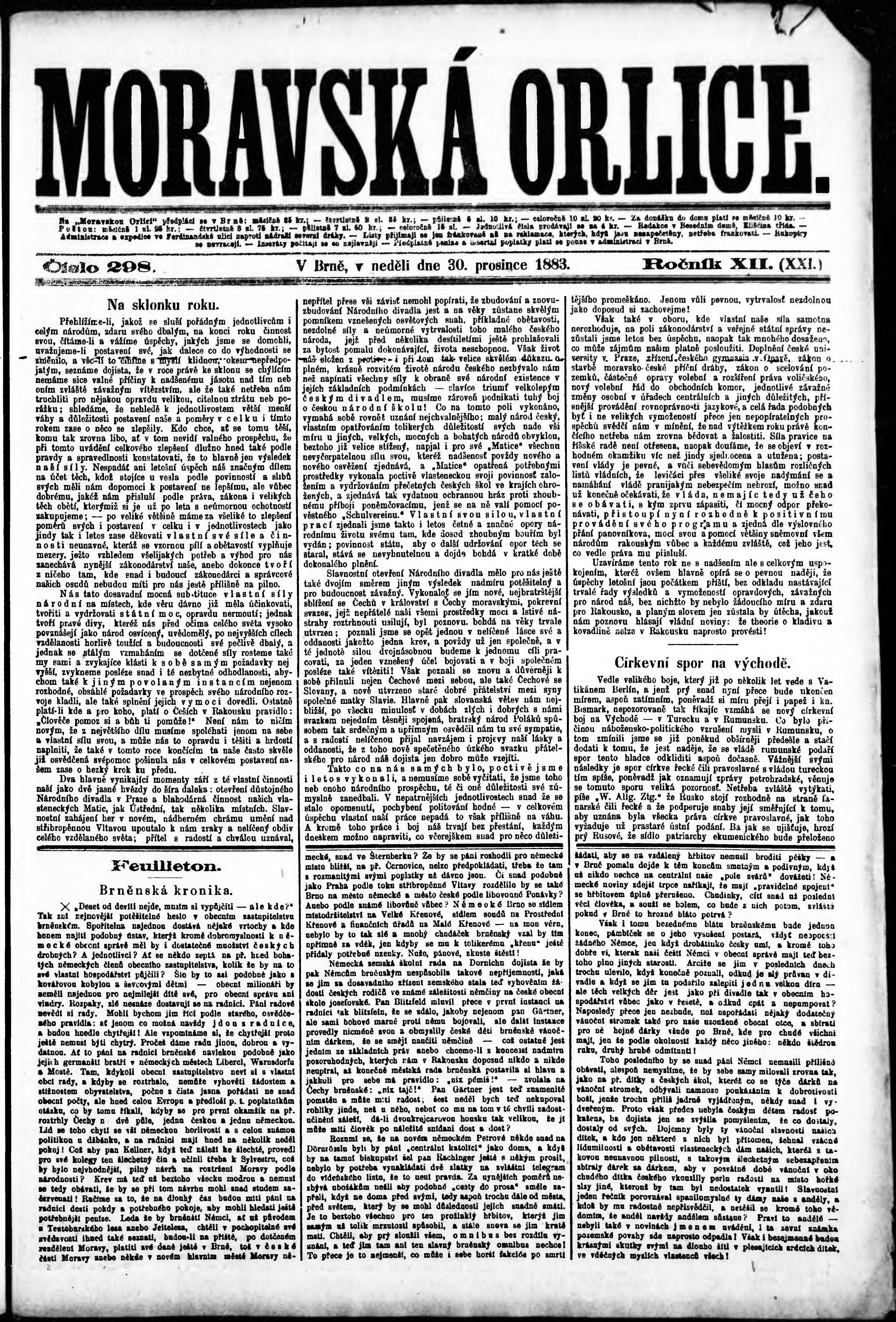 * Datum vydání výtisku: 30.12.1883 Číslo výtisku: 298