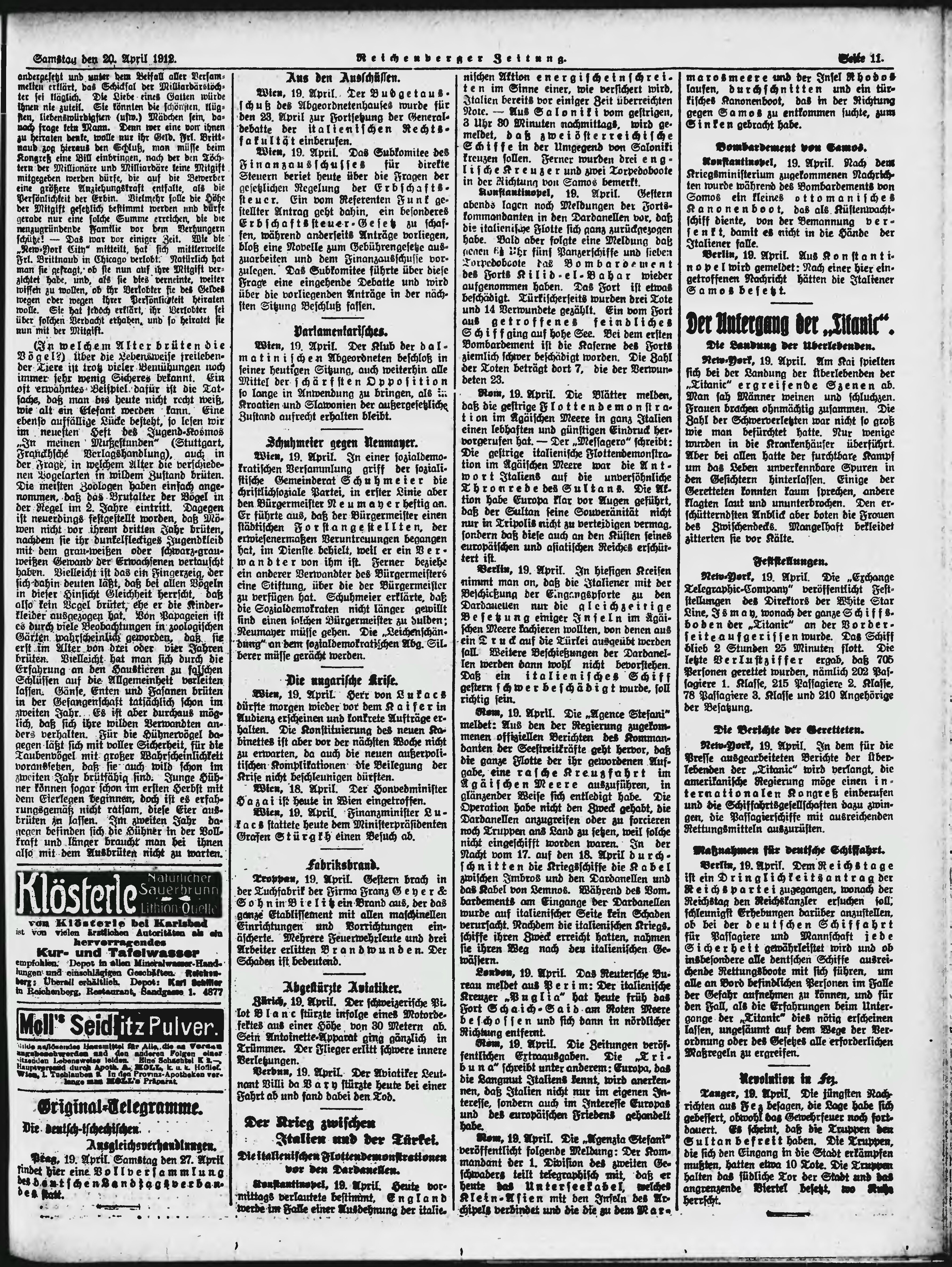 * Datum vydání výtisku: 20.4.1912 Číslo výtisku: 94 Poznámky k výtisku: ranní vydání;