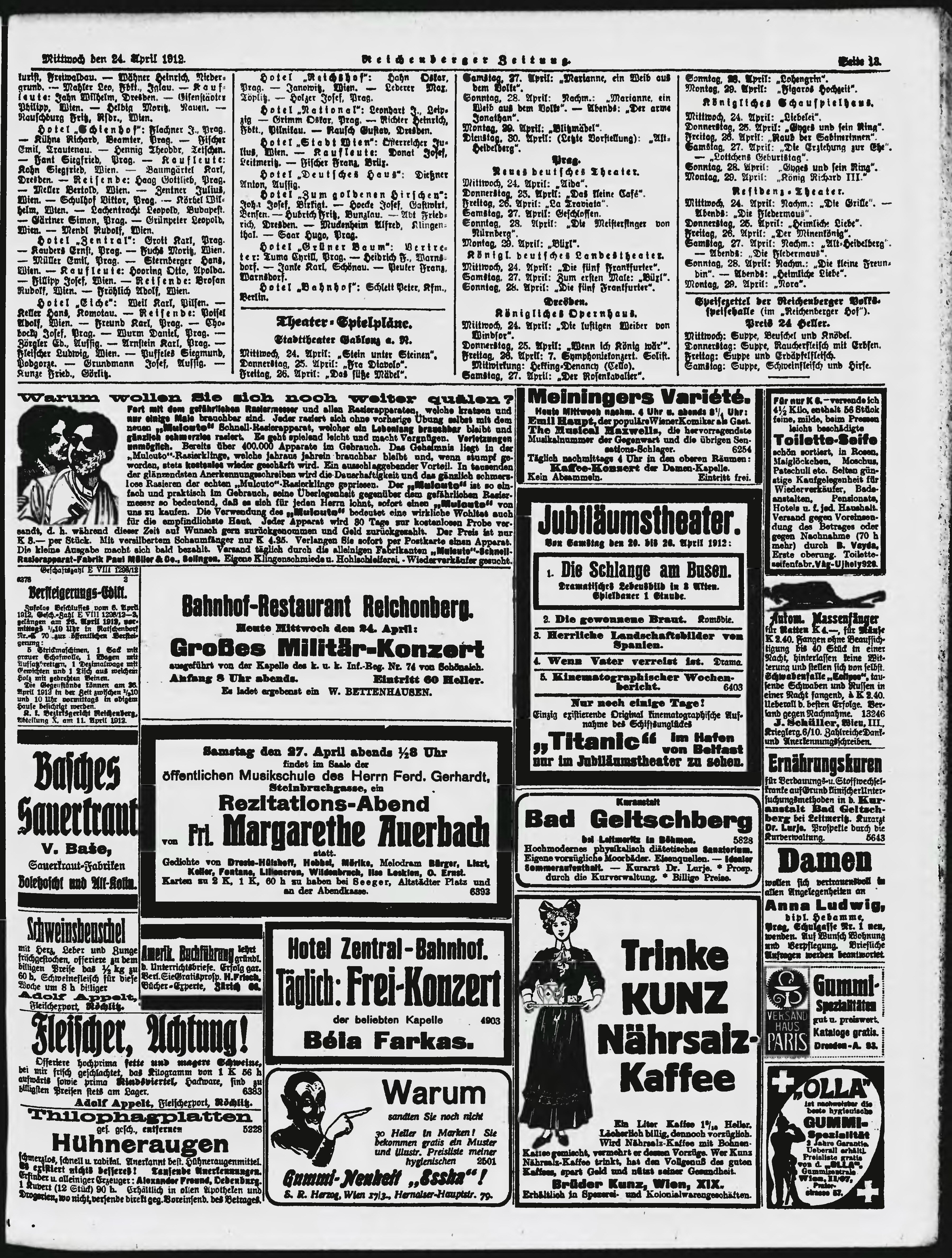 * Datum vydání výtisku: 24.4.1912 Číslo výtisku: 97 Poznámky k výtisku: ranní vydání;