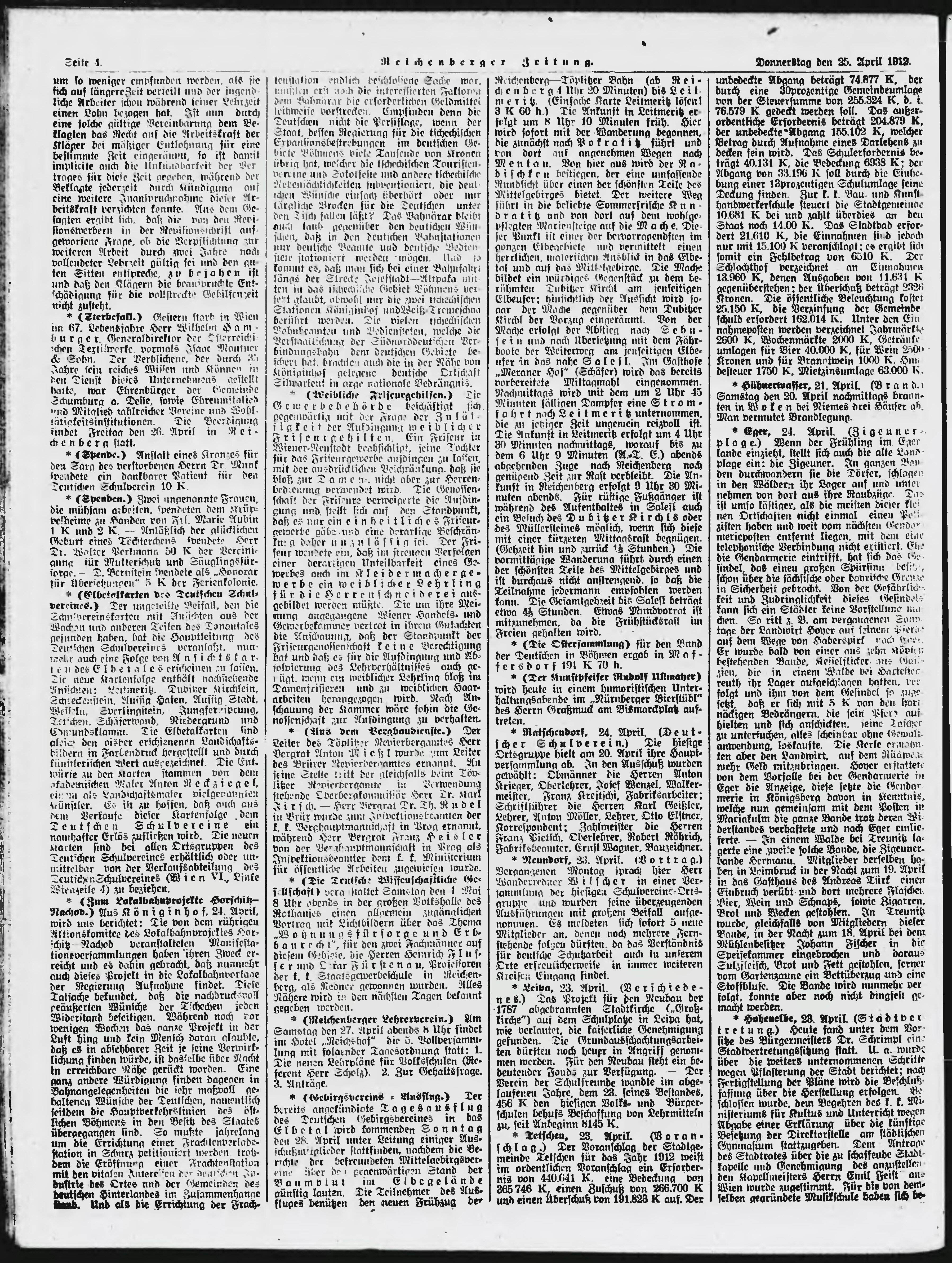 * Datum vydání výtisku: 25.4.1912 Číslo výtisku: 98 Poznámky k výtisku: ranní vydání;
