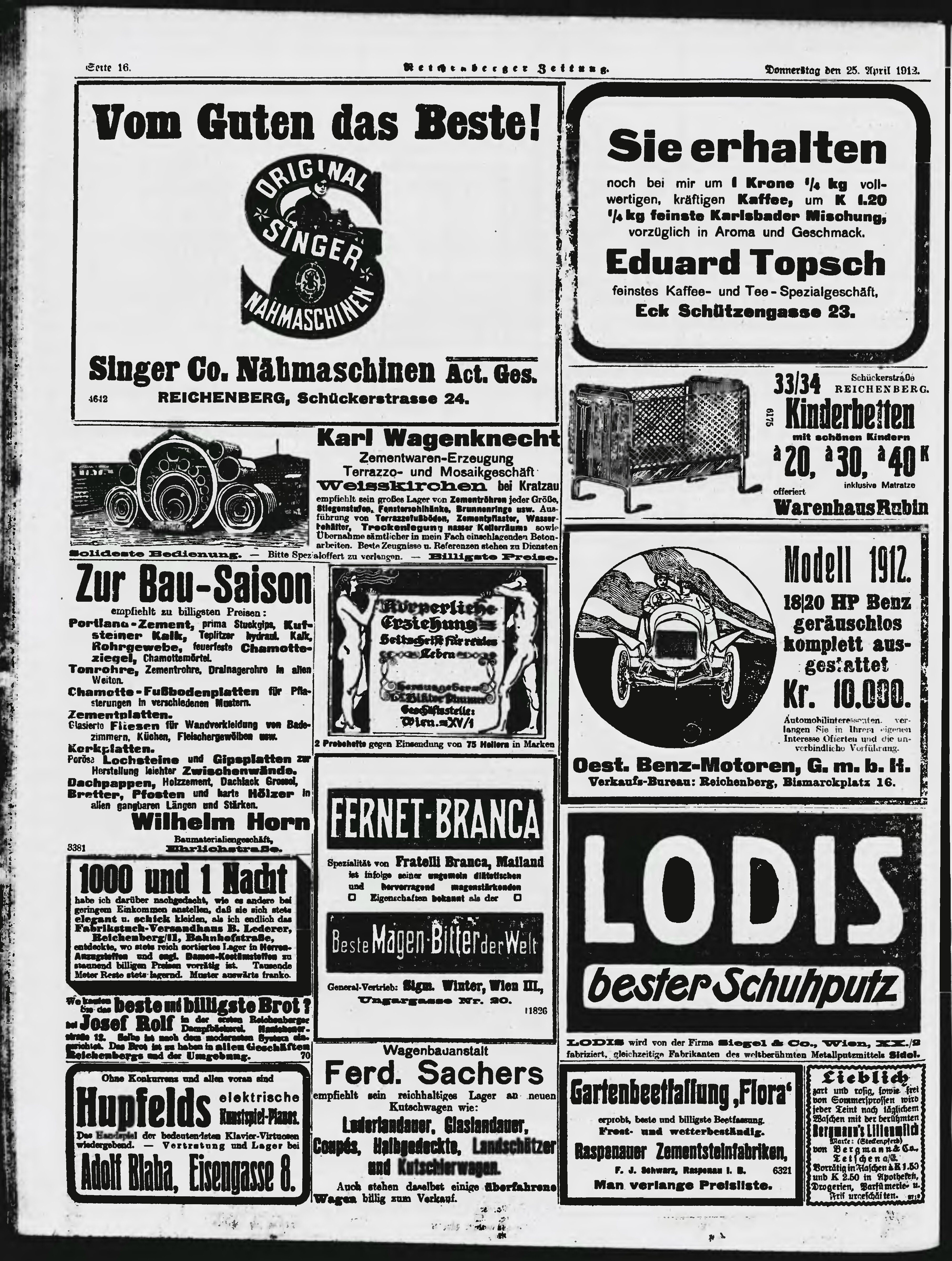 * Datum vydání výtisku: 25.4.1912 Číslo výtisku: 98 Poznámky k výtisku: ranní vydání;