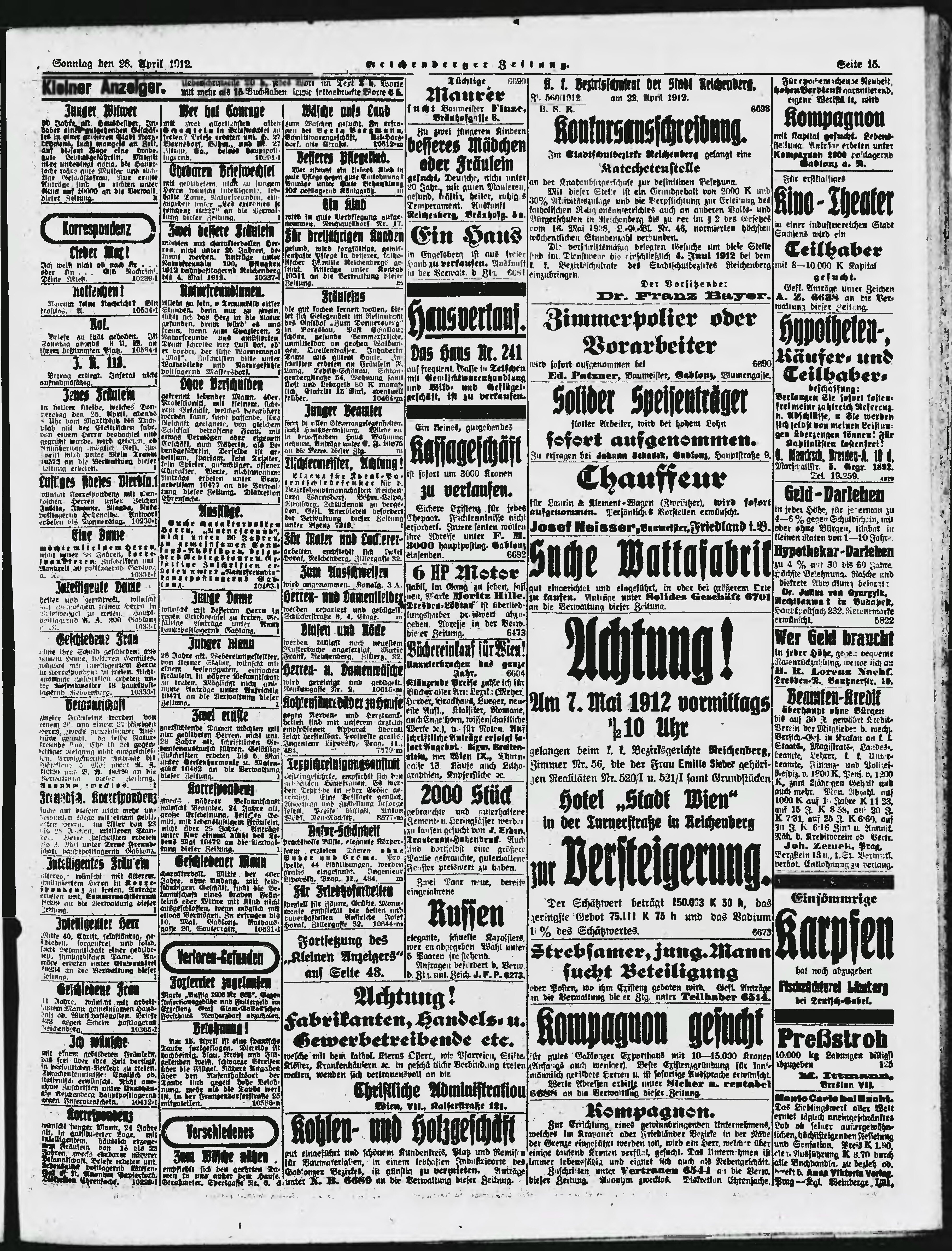 * Datum vydání výtisku: 28.4.1912 Číslo výtisku: 101 Poznámky k výtisku: ranní vydání;