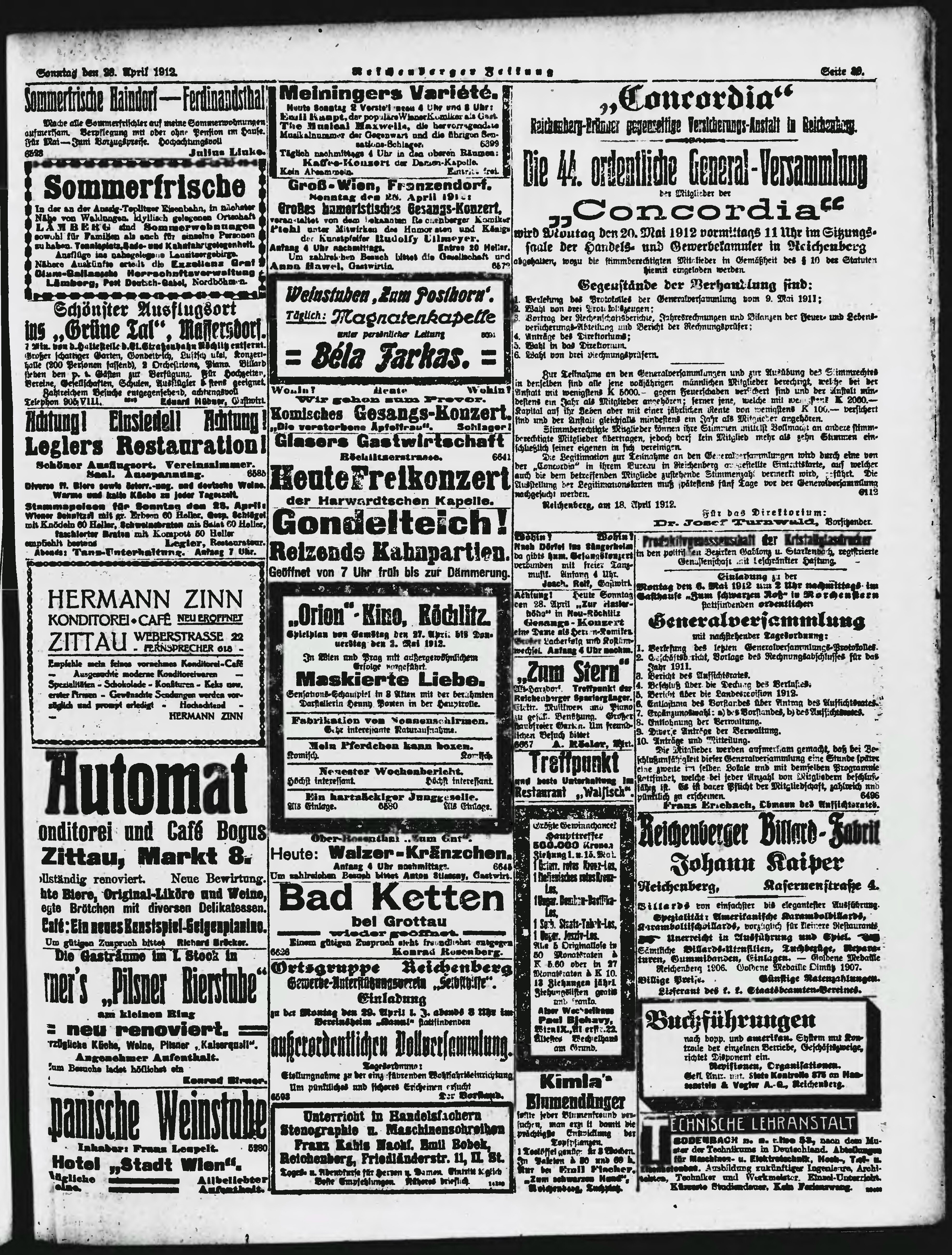 * Datum vydání výtisku: 28.4.1912 Číslo výtisku: 101 Poznámky k výtisku: ranní vydání;