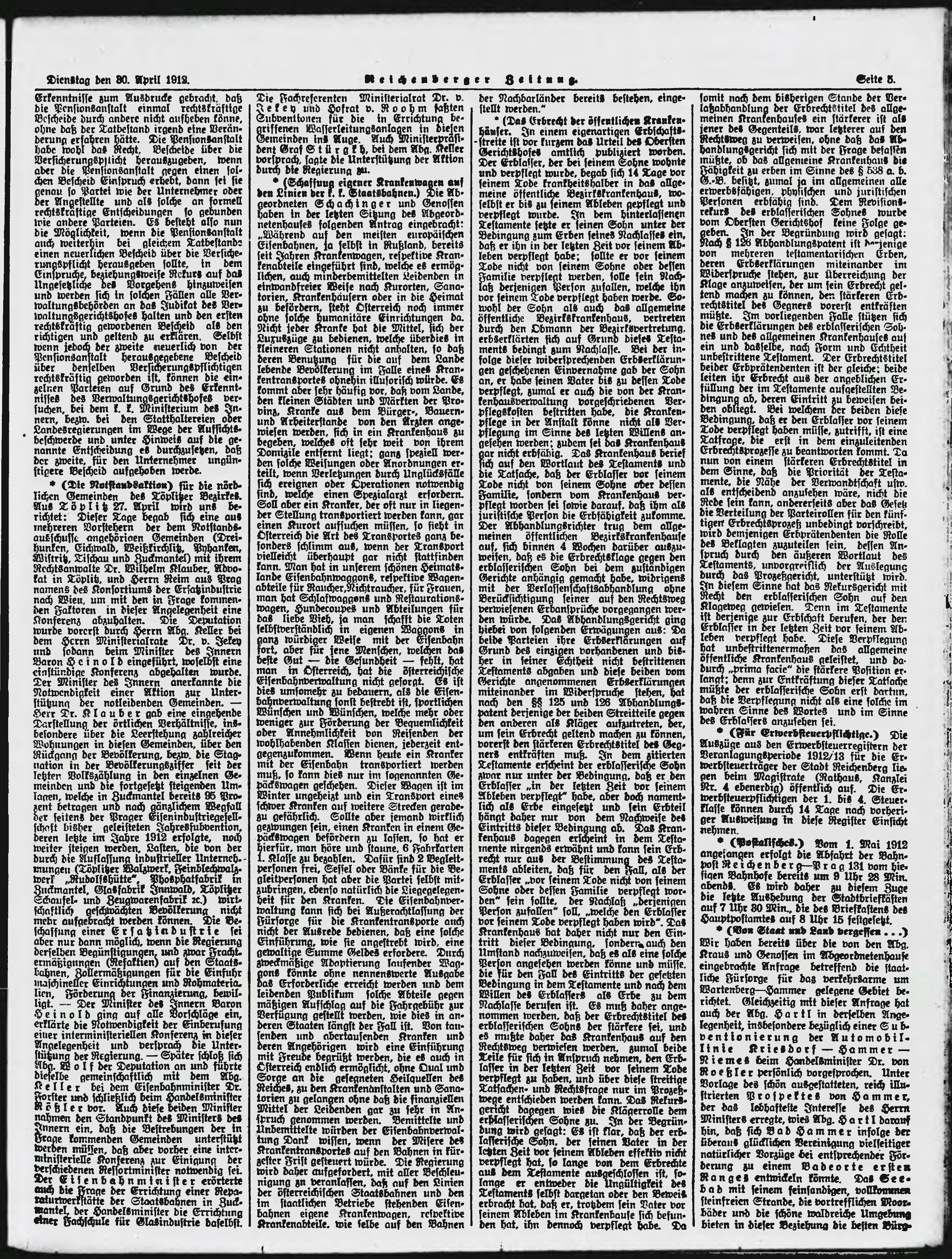 * Datum vydání výtisku: 30.4.1912 Číslo výtisku: 102 Poznámky k výtisku: ranní vydání;