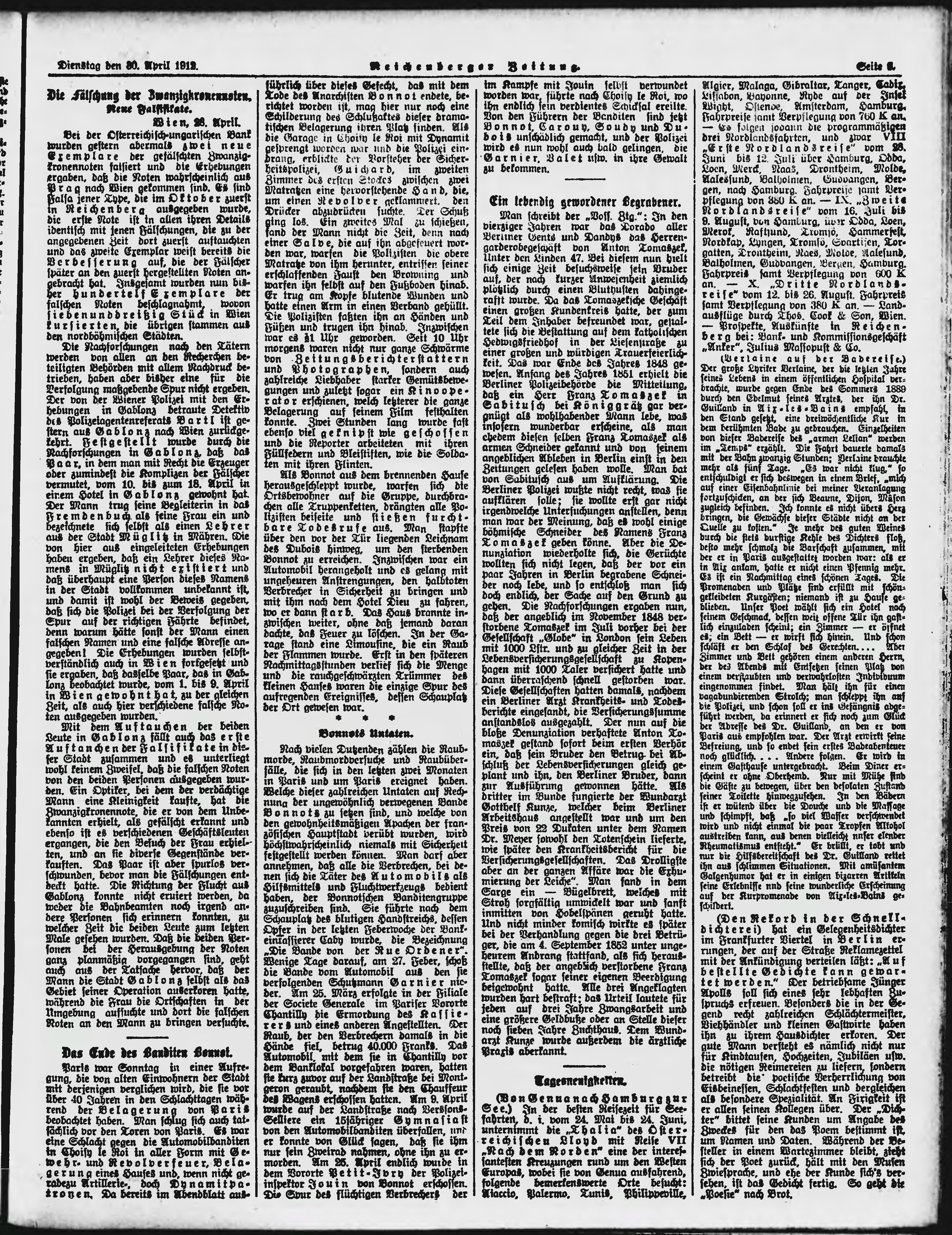 * Datum vydání výtisku: 30.4.1912 Číslo výtisku: 102 Poznámky k výtisku: ranní vydání;