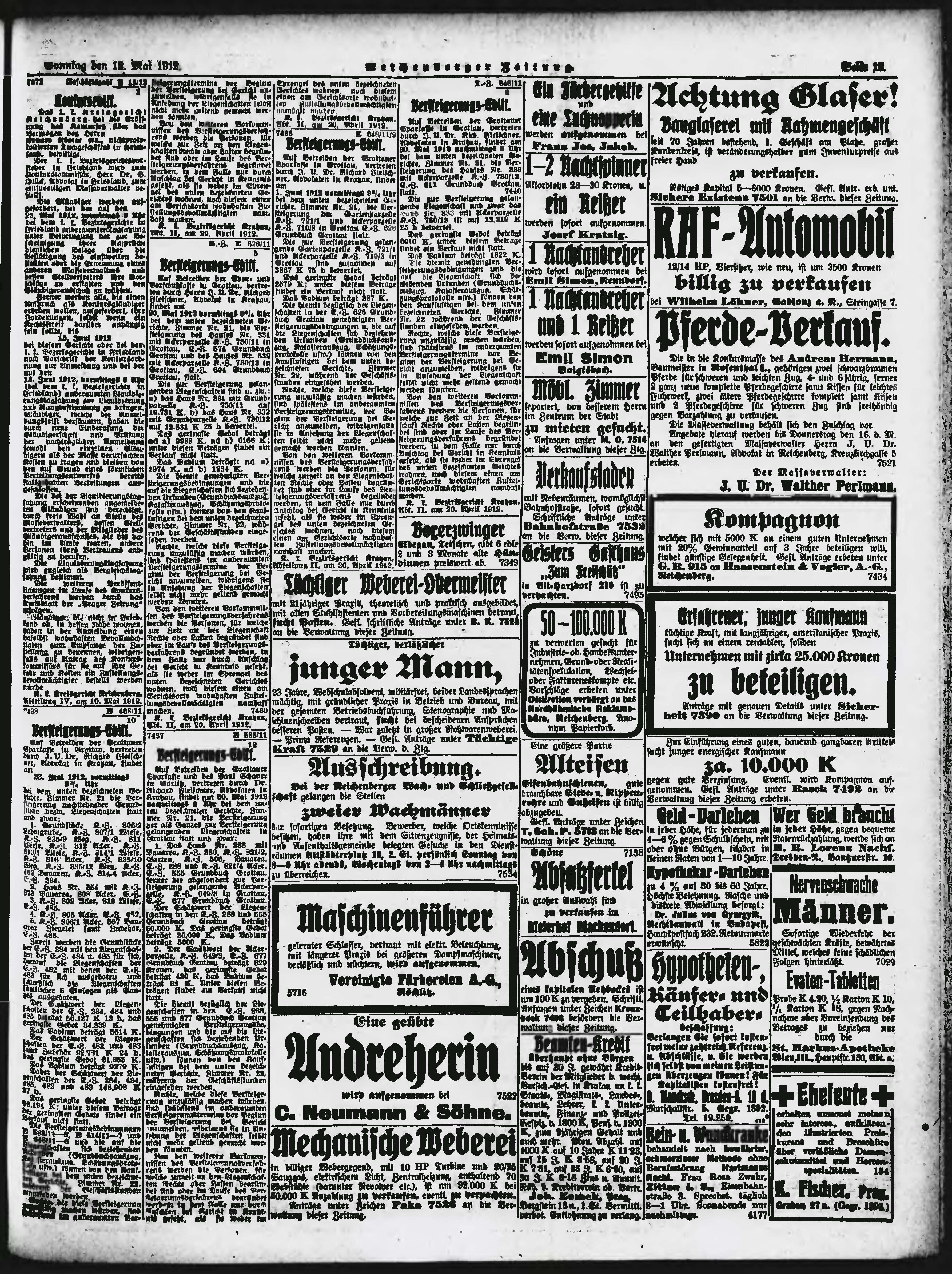 * Datum vydání výtisku: 12.5.1912 Číslo výtisku: 113 Poznámky k výtisku: ranní vydání;